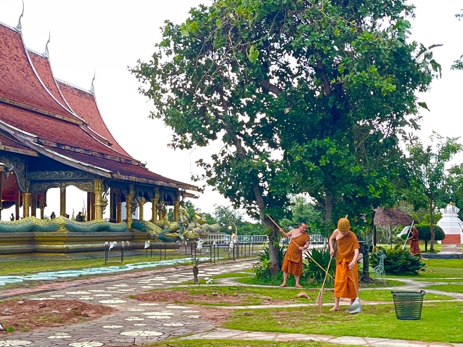 ด้านนอกพระสงฆ์กำลังตั้งหน้าตั้งตากวาดลานวัดกัน ยิ่งทำให้เรารู้สึกเลื่อมใสขึ้นไปอีก