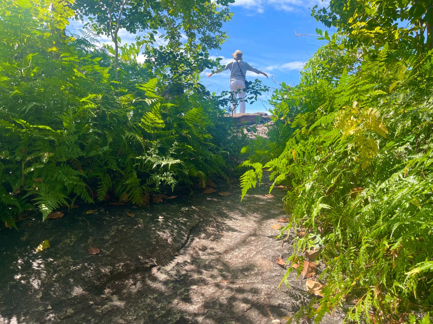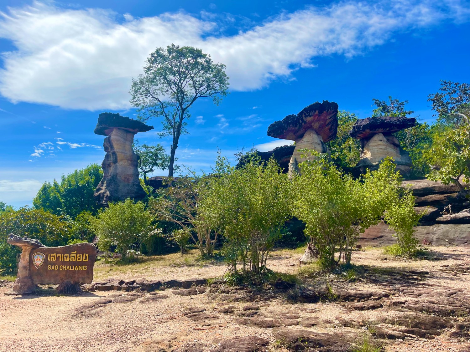 หลังจากชื่นชมกับเสาเฉลียงรูปร่างแปลกตา เราเดินผ่านทางเดินเล็กๆ ลัดเลาะขึ้นเขามาไม่ไกล จนพบกับลานหินแตก