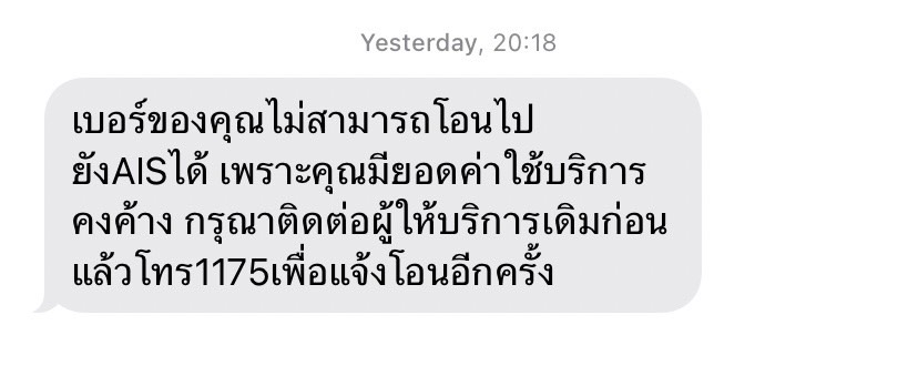 ทำไมย้ายค่ายจากทรูไป AIS ไม่ผ่าน ทั้งที่จ่ายเงินเกินค่าใช้จ่ายแล้ว ยังได้รับข้อความว่ามีค่าใช้จ่ายค้างกับทรู