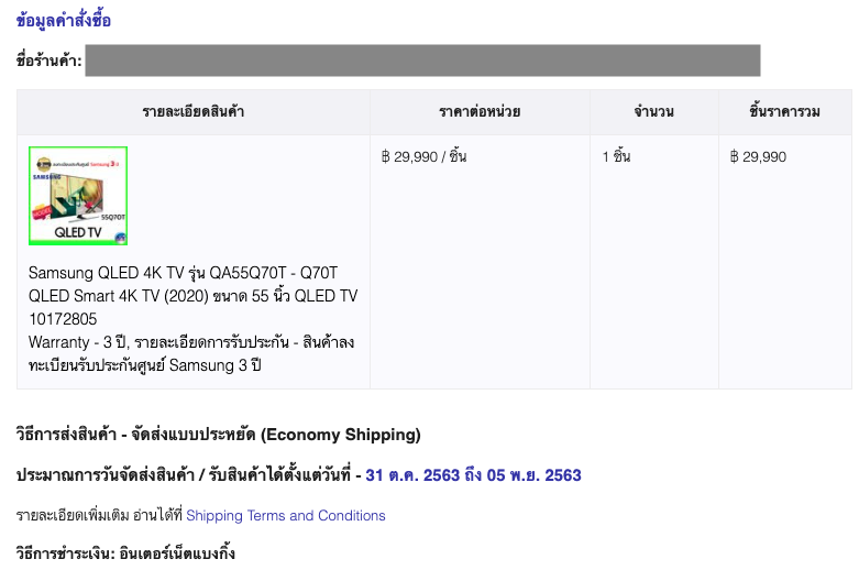 ผมได้ใช้ทีวีซัมซุงรุ่น QA55Q70T โดยซื้อมาจาก NocNoc ตั้งแต่ปี 2563 ซึ่งก็ไม่ได้มีปัญหาอะไรจนกระทั่ง ผ่านไปสองปี ในระหว่างที่กำลังนั่งดูทีวี หน้าจอก็กลายเป็นสีดำ ภาพไม่ออก มีแต่เสียง ลองพยายามทำตามวิธีในเน็ตแล้วเช่น ถอดเสียบปลั๊กใหม่ ก็ไม่หาย เลยลองไปย้อนดูคำสั่งซื้อพบว่ามีประกันที่ 3 ปีก็เลยพออุ่นใจบ้าง แต่พอติดต่อไปทางศูนย์ซัมซุง ก็พบว่าหมดประกันไปแล้ว เพราะเขาประกันแค่ปีเดียว หากอยากได้สามปีจะต้องมีการลงทะเบียนเพื่อขยายประกันซึ่งผมก็ไม่ได้เก็บหลักฐานหรืออะไรเอาไว้ว่ามีการลงทะเบียนแล้ว(หรือยัง) ซึ่งทางซัพพอร์ทก็แจ้งว่าถ้าไม่มีในระบบว่าลงทะเบียนเอาไว้ก็ถือว่าหมดประกัน ต้องเสียเงินซ่อมเองเท่านั้น ซึ่งถือว่าทีวีราคาระดับกลางๆ แต่ใช้ได้แค่สองปีเป็นอะไรที่ไม่คุ้มเอาเสียเลย