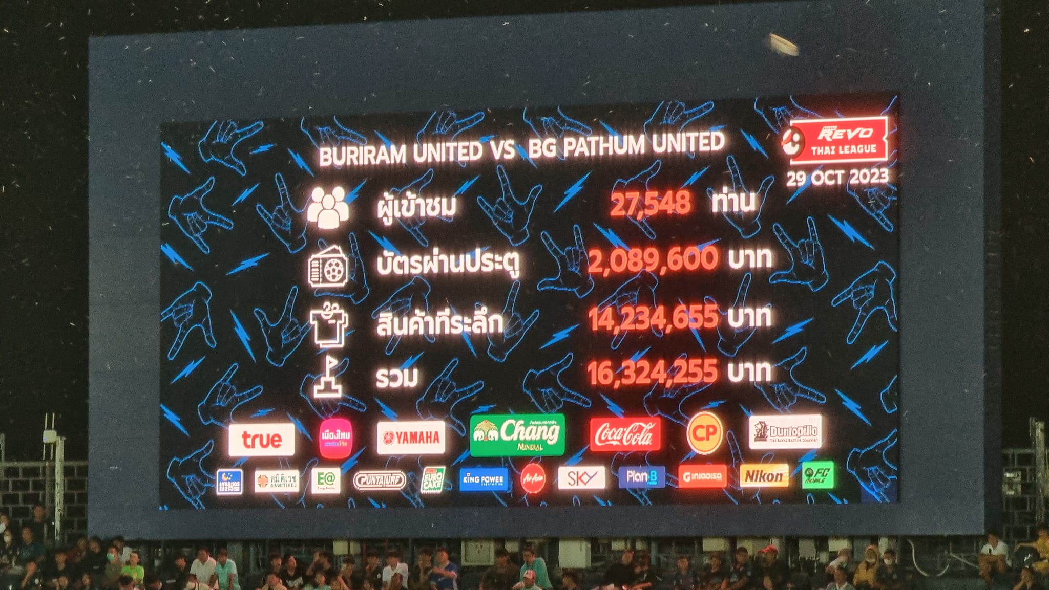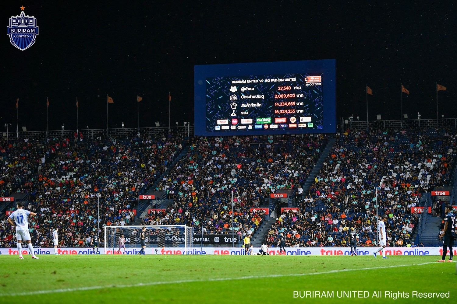 สถิติ ผู้เข้าชม ยอดขายบัตรและของที่ระลึก นัดบุรีรัมย์ vs บีจี สูงที่สุดในไทยลีก