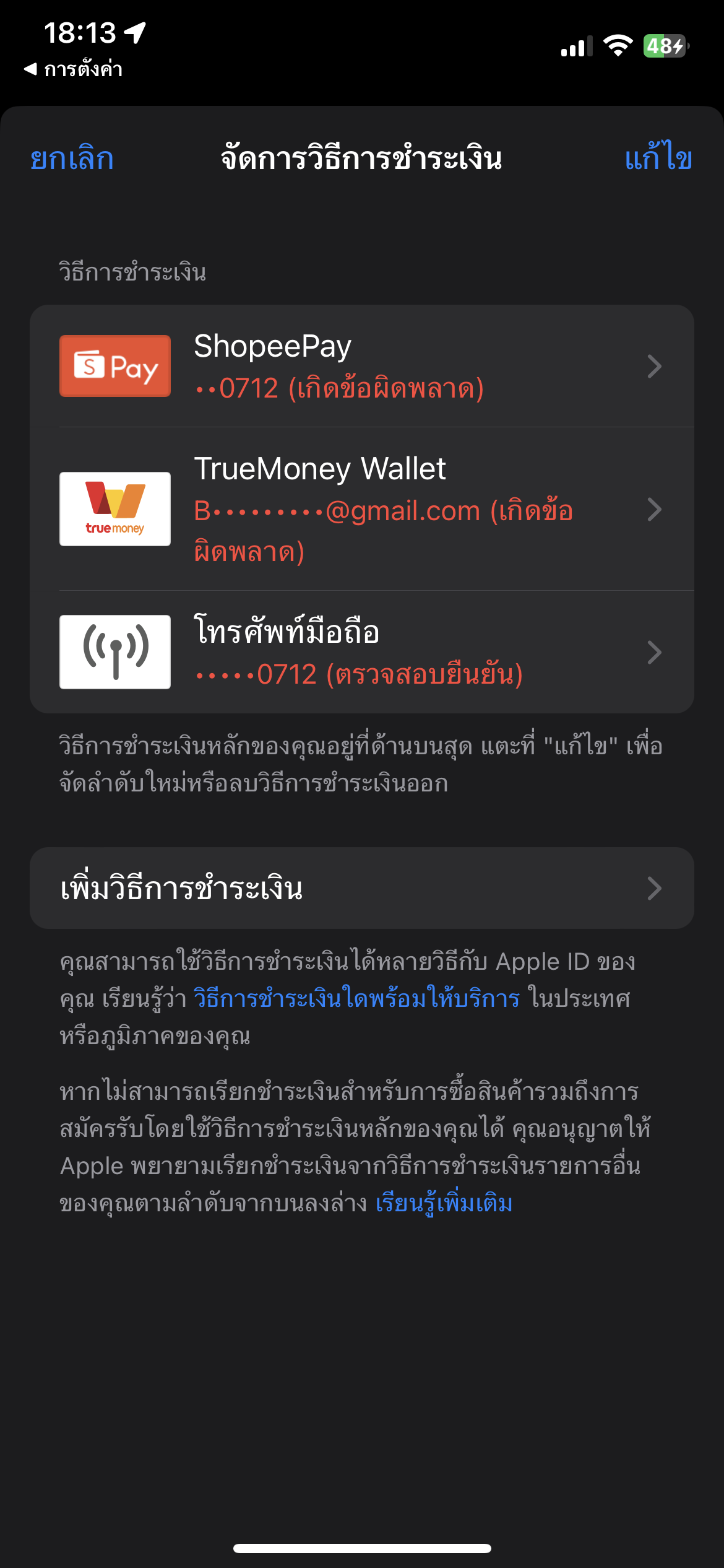 เพิ่มวิธีการชำระเงินiOSไม่ได้ค่ะทำยังไงดี😭?