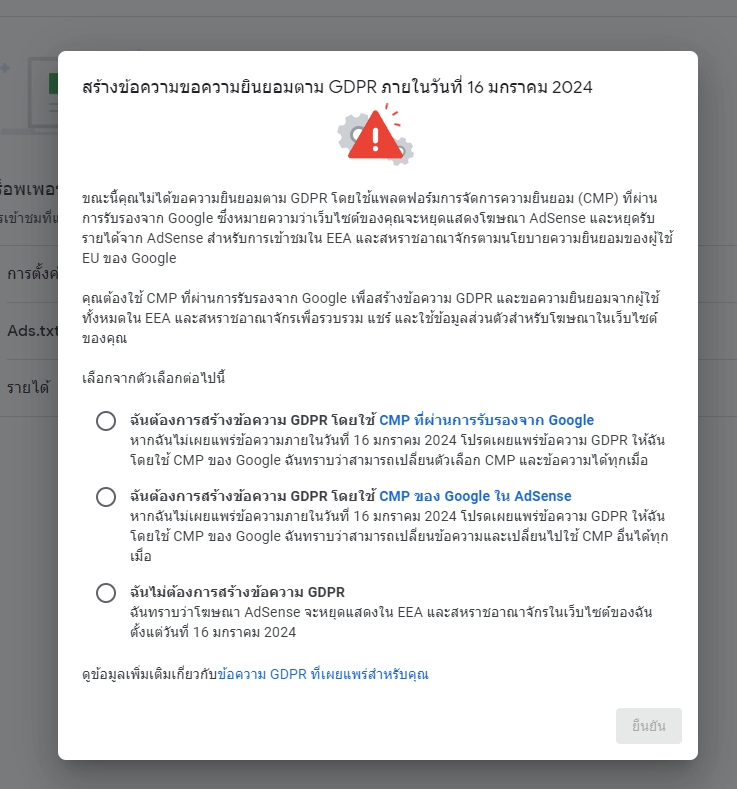 สมัคร GG Adsense ผ่านมา 1 สัปดาห์ และขึ้นหน้าต่างขอควมยินยอม GDPR ไม่แน่ใจต้องทำยังไงต่อ