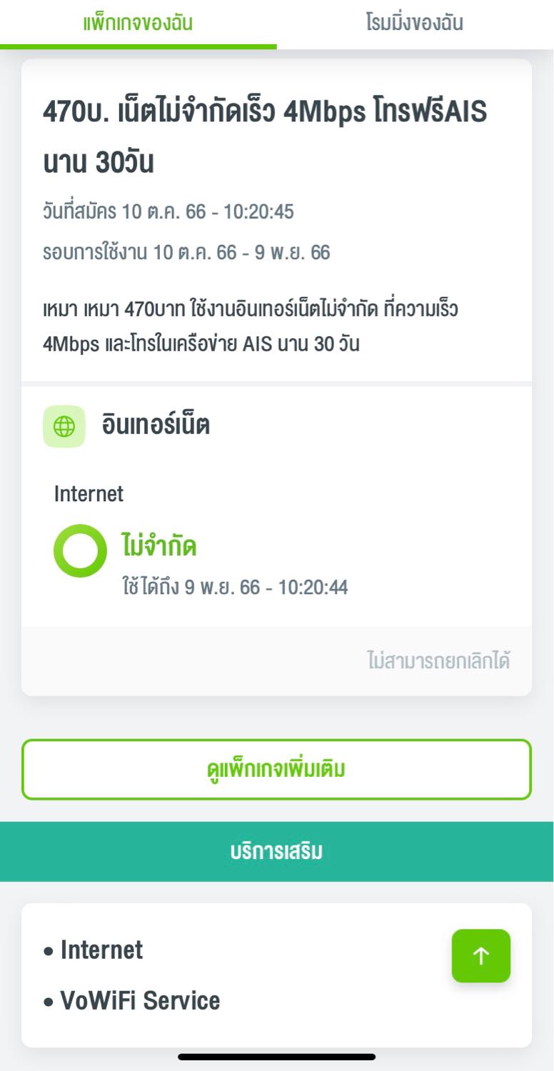 สอบถามหน่อยคับ ผมได้สมัครใช้เหมา เหมา เดือนละ 280บ.(รวม VAT) เน็ต 5G 25GB พร้อมเน็ตเร็ว 10Mbps และ AIS SUPER WiFi ไม่จำกัด หักค่าบริการทุกเดือน นาน 6 เดือน (กรณีมียอดเงินไม่เพียงพอในวันตัดค่าแพ็ก จะสา