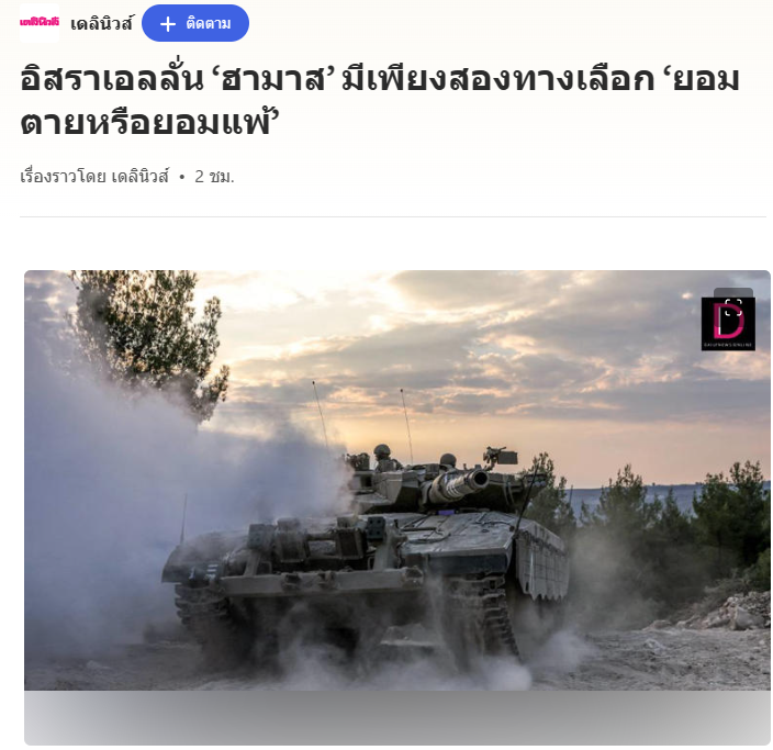 อิสราเอลลั่น ‘ฮามาส’ มีเพียงสองทางเลือก ‘ยอมตายหรือยอมแพ้’