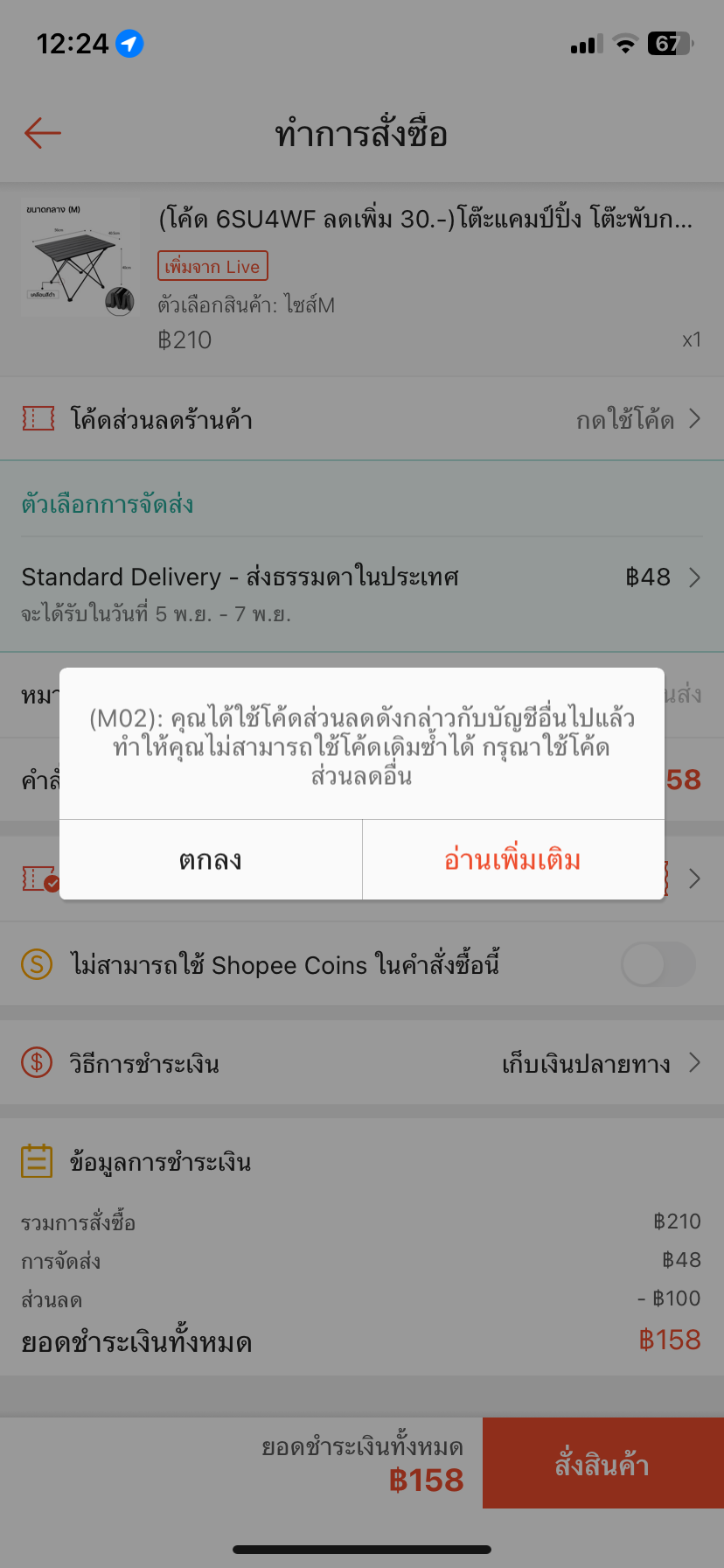 ทำไมใช้โค้ดช้อปปี้ไม่ได้ทั้งๆที่ยังไม่เคยใช้เลยแล้วขึ้นแบบในรูป