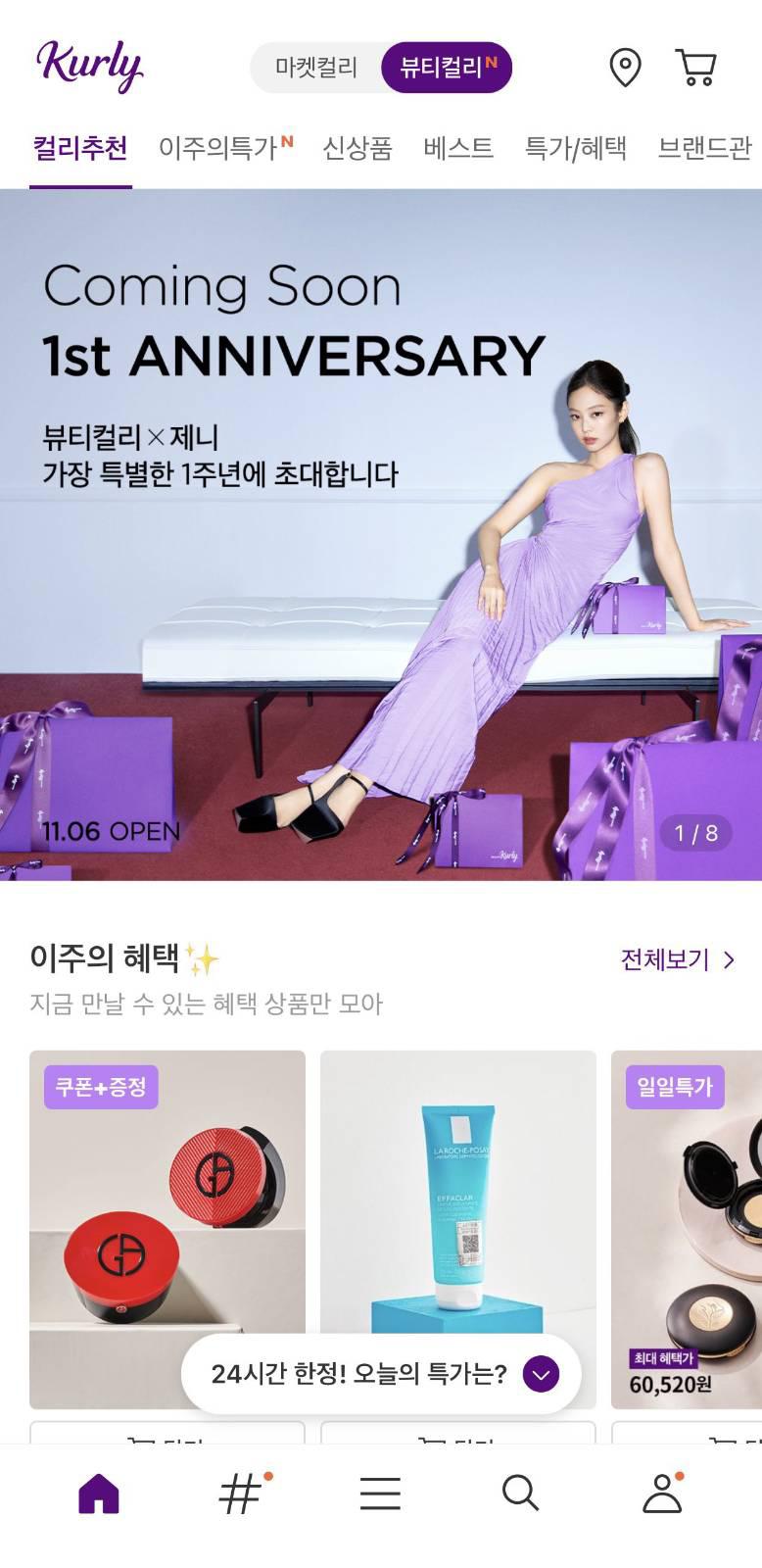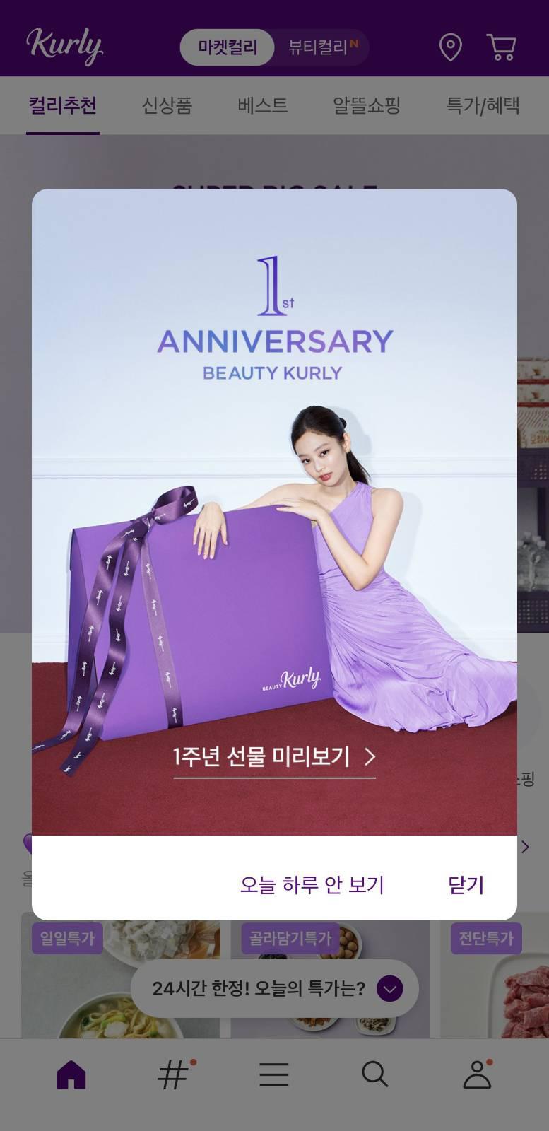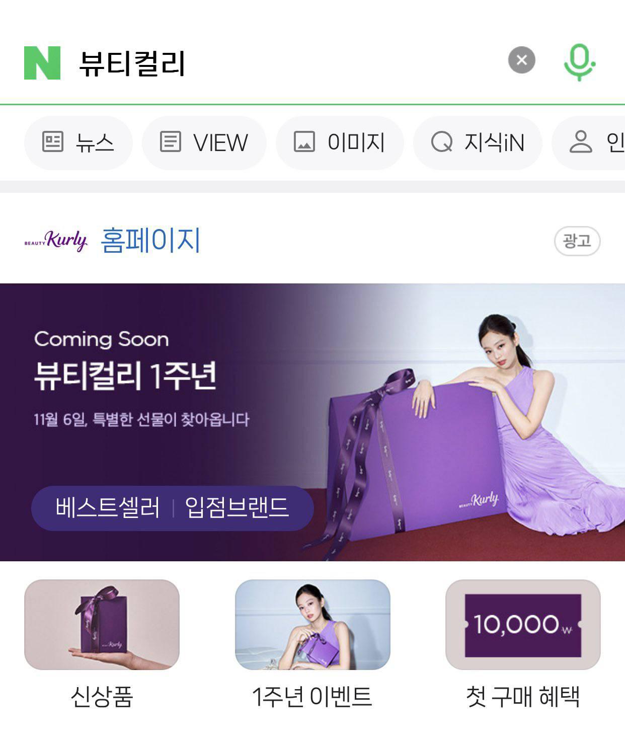 แถบค้นหา Naver Beauty Curly หน้าจอเริ่มต้นของแอพ Beauty Curly & กิจกรรมครบรอบ 1 ปีของ Jennie ลองเข้าไปดูในแอพ Beauty Curly