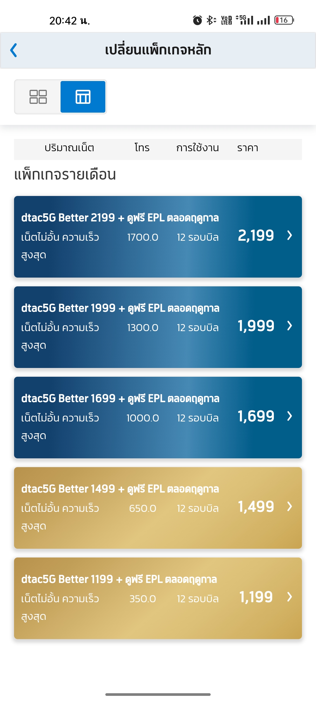dtac รายเดือนไม่มีแพ็คเกจต่ำกว่า 1199 ให้เปลี่ยนเหรอครับ