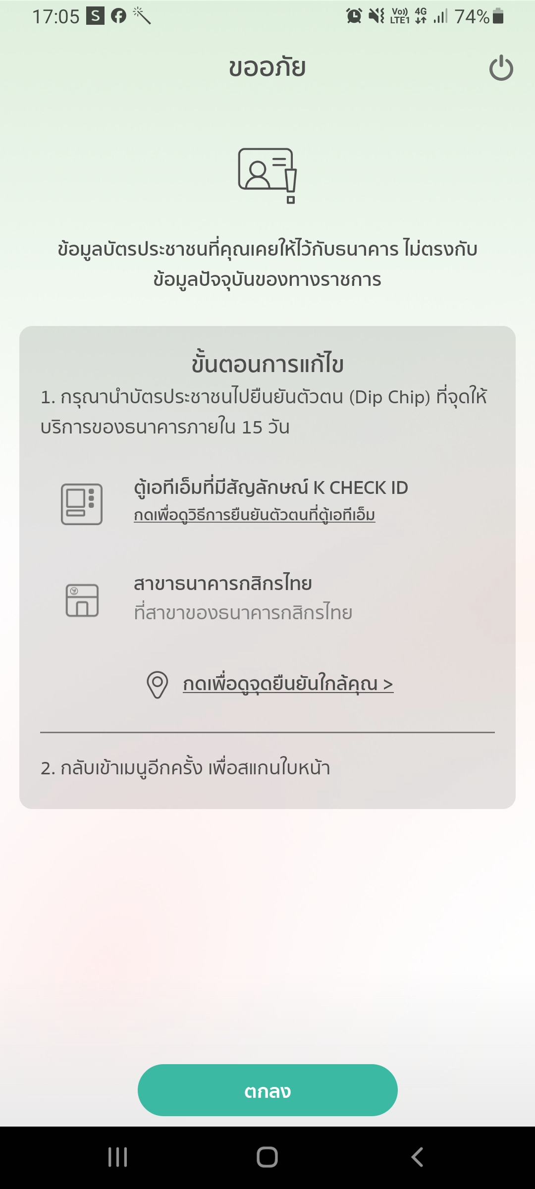 กสิกรไทย สแกนหน้าจนล็อค แต่ยืนยันตัวตนกับตู้ไม่ได้ ไม่อยากไปสาขาต้องทำไง