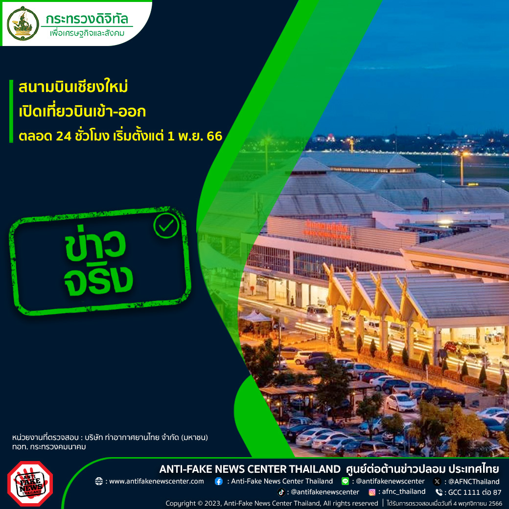 สนามบินเชียงใหม่เปิดเที่ยวบินเข้า-ออก ตลอด 24 ชั่วโมง เริ่มตั้งแต่ 1 พ.ย. 66