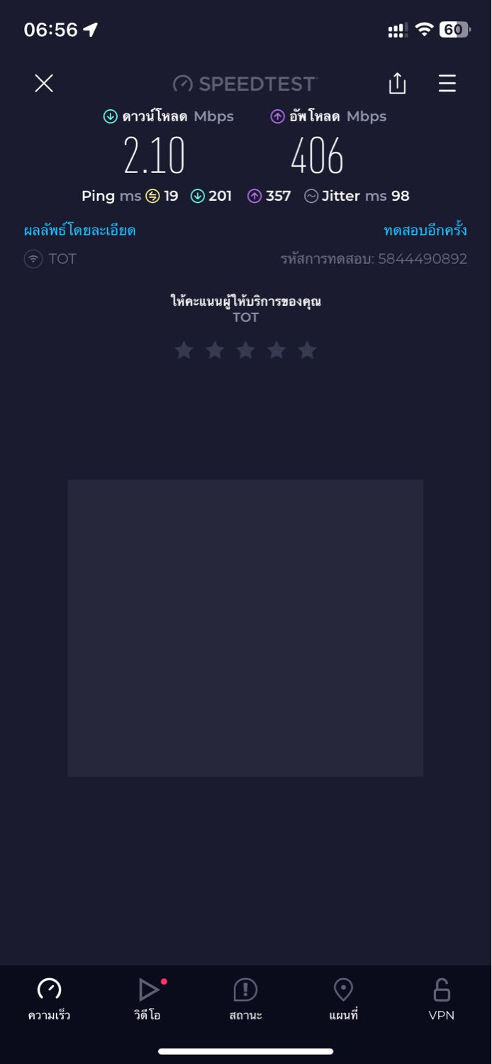 เน็ตบ้านTOT ช้าตอนทดสอบความเร็ววิ่งไม่เต็ม100mbpsสูงสุดโมเด็ม อยากอัพเกรดเป็น1000mbps