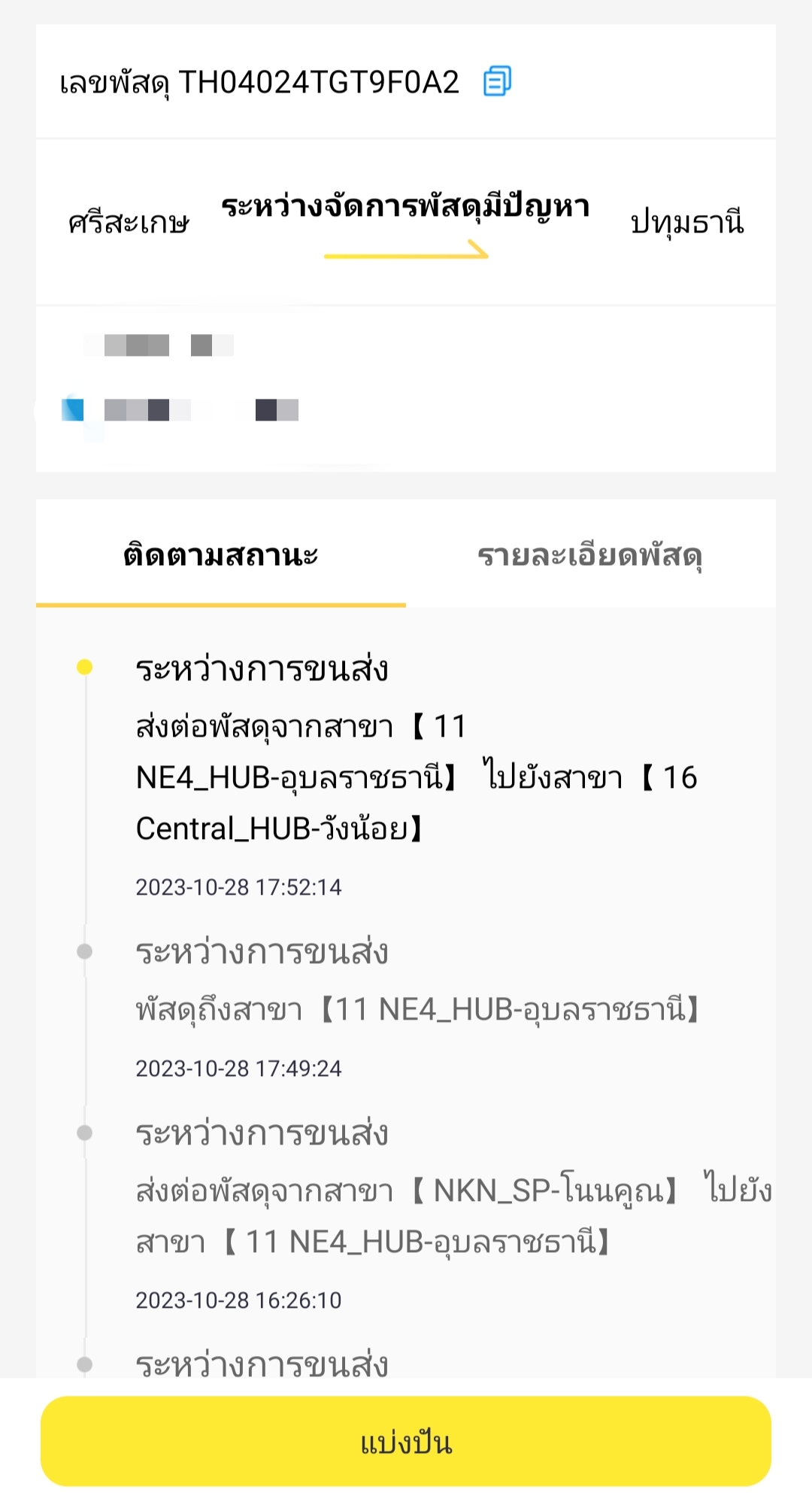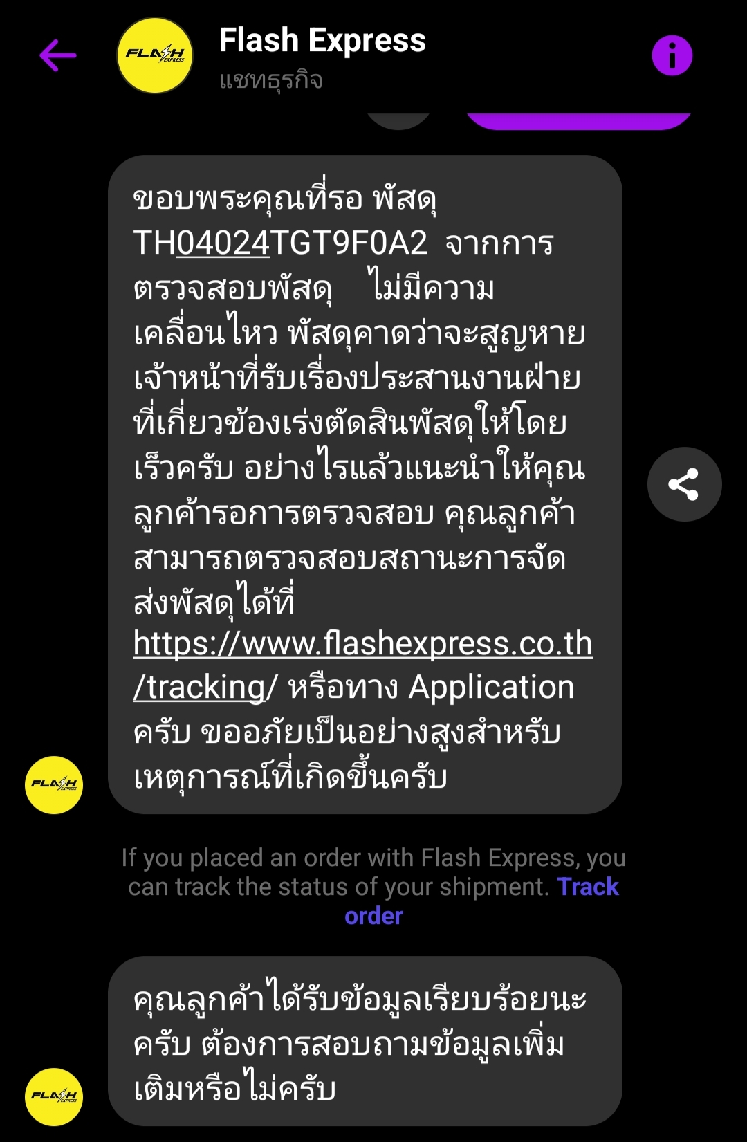 เราส่งของโดยใช้บริการ flash มาตลอด ซึ่งก้มีปัญหาบ้าง พอแก้ไขได้ แต่รอบนี้ส่งของไปวันที่ 6 วันที่ 7 รถมารับไปถึงสาขาวังน้อย ไปสาขาธรรมศาสตร์ แล้วหายไปเลย ไม่ถึงสาขาปลายทาง จนล่วงเลยมา 1 อาทิตย์เลยถามไป