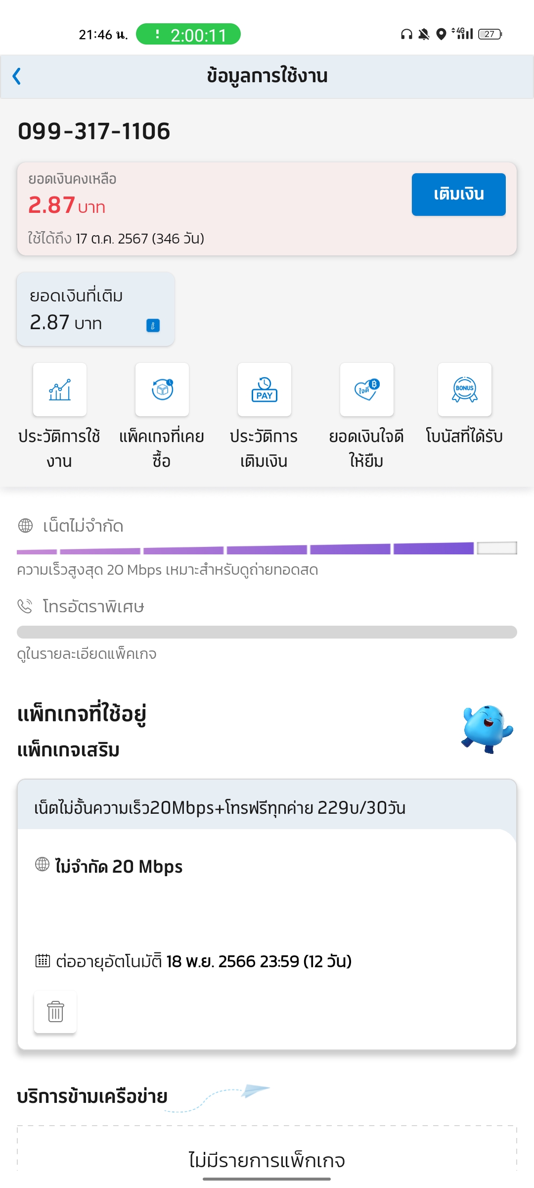 พอดีจะกดซื้อแพ็คเกจเสริมเน็ตเต็มสปีด99บ. 7วันแต่มันไม่ยอมให้ซื้อครับตอนแรกคิดว่าหรือเพิ่งกดซื้ออีกแพ็คไปแต่พอใช้แพ็คหมดแล้วจะกดซื้อก็ยังกดไม่ได้เกิดอะไรขึ้นครับ