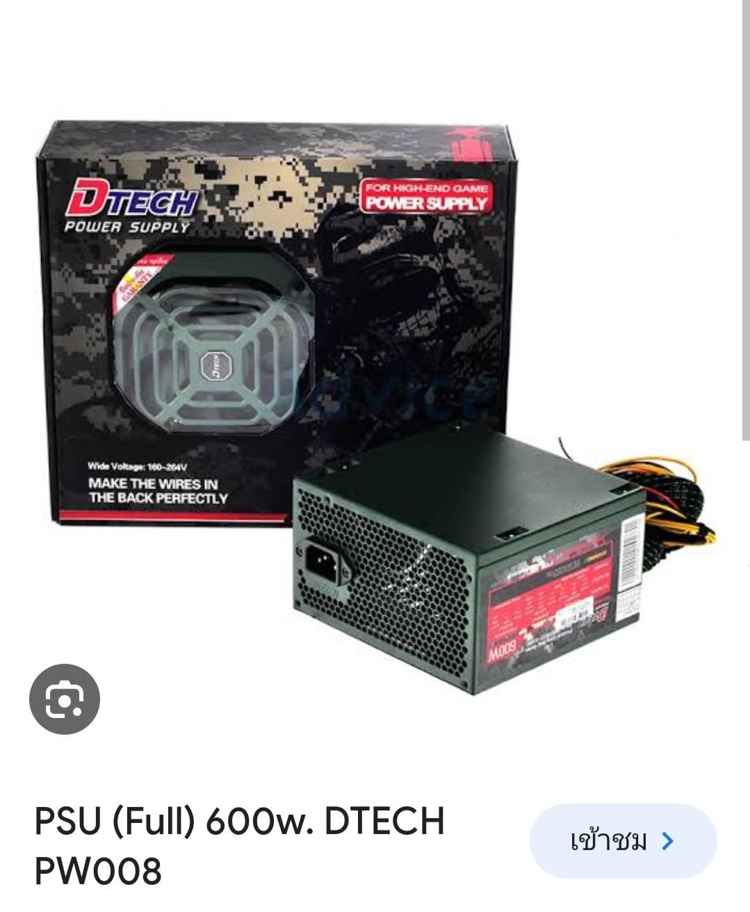 พอดีมีของเก่าอยู่ power supply dtech 600w pw008a ใส่กับสเปค