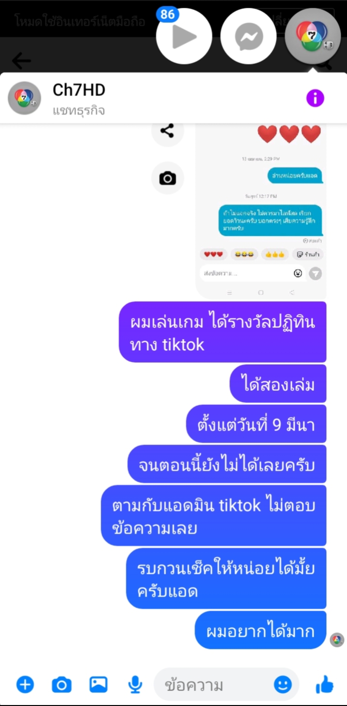 อัพเดท : ตอนนี้ทางแอดมินรับเรื่องแล้วบอกจะส่งของรางวัลให้ภายในวันนี้ ขอบคุณแอดมิน และทุกคนที่ช่วยดันกระทู้ครับทางด้านที่ไม่ได้อ่านข้อความ แอดมินขอโทษ และอธิบายว่า ข้อความเยอะเลยอาจตกหล่น ต้องขอโทษทางช่อง 7 ด้วยครับที่ใช้คำในกระทู้แรงไปหน่อย แก้ไขหัวกระทู้ไม่ได้ด้วย