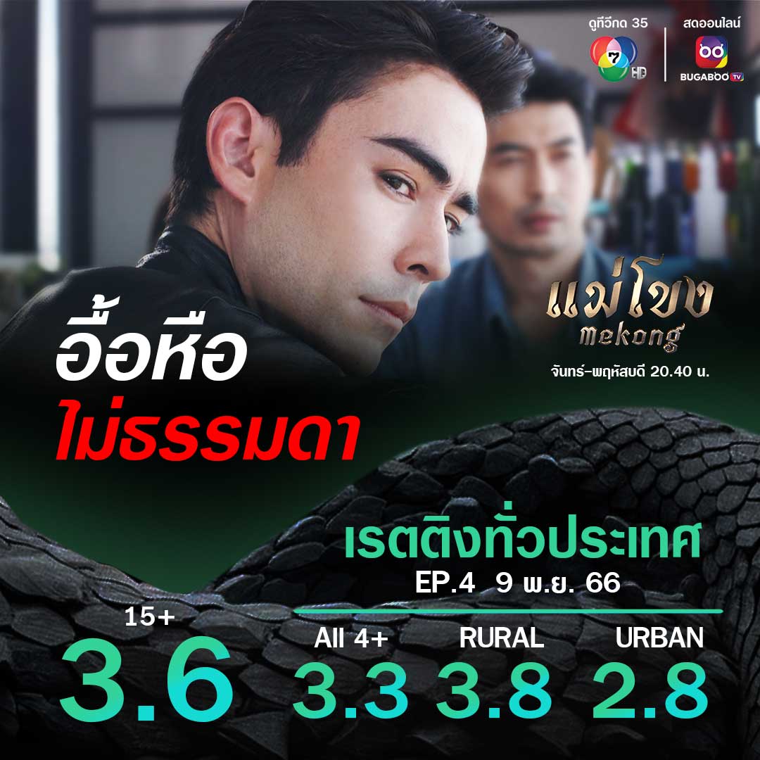 เรตติ้งละครช่อง 7 วันที่ 9 พ.ย. 66 มนตราฟ้าฟื้น และ แม่โขง ได้ไป...