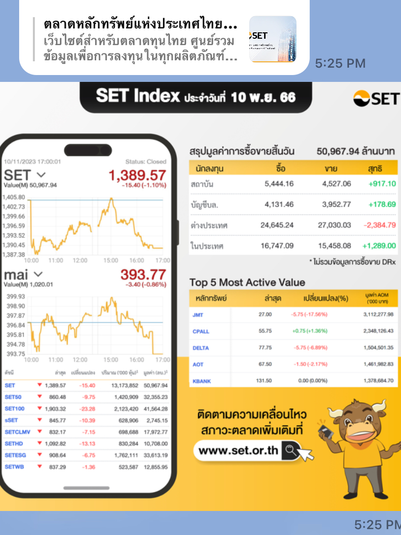 10 Nov. 2023 Set summary ต่างชาติ ขาย 2,384.79 ลบ