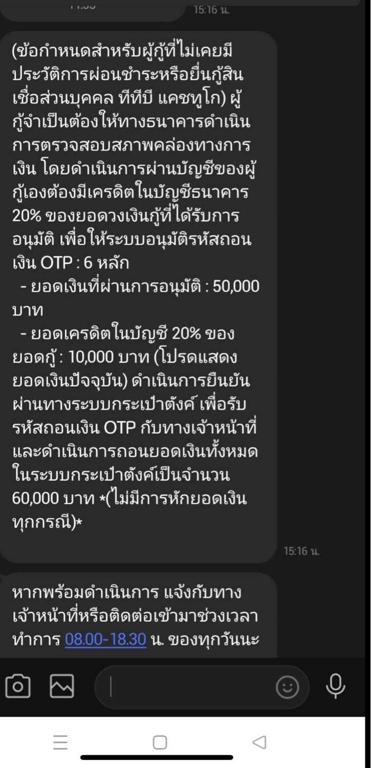 กู้แคชทูโก 50,000 ต้องเอาเงินเข้าบัญชี 20%ก่อน ใช่คอลเซ็นเตอร์มั๊ย