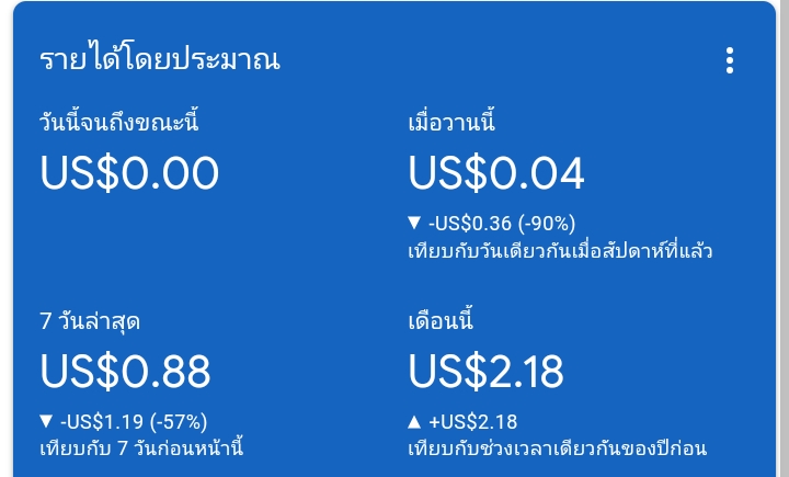 ทำไมพักหลังๆมานี้ ยอดรายได้จาก Adsense พันทิป มันน้อยมากๆเลยค่ะ เราได้ไม่เคยถึง 0.30/วันเลยค่ะ ทั้งที่เมื่อหลายเดือนก่อนมันดีกว่านี้ คนอื่นเป็นเหมือนกันบ้างไหมคะ เหนื่อย .. แบบนี้คงอีกนานกว่าจะได้ถอ