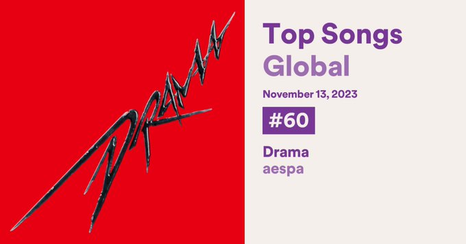 (DAY4) aespa "Drama" อันดับที่ 60 บน Spotify Top Song Global
