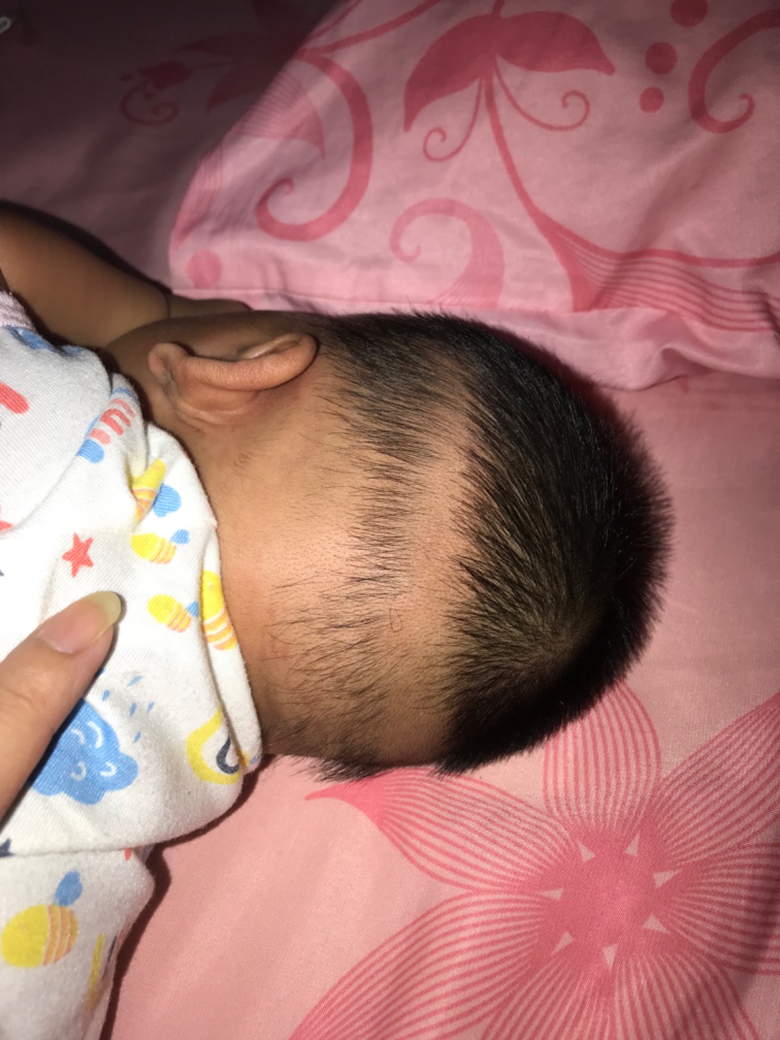 สาวเราโกนผมตอน 1 เดือน ตอนนี้น้อง 2 เดือนเเล้วค่ะ ผมตรงอื่นขึ้นหมดเลยยกเว้นข้างหลัง แหว่งมากเลยเราลูบดูก็เป็นตอเหมือนจะไม่ขึ้นเลยค่ะ ใช้ปัตตาเลี่ยนไถนะคะ