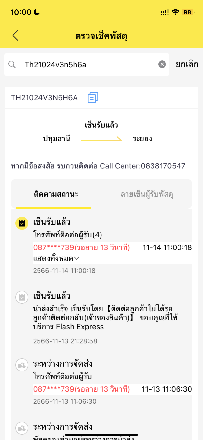 เราส่งของกับ flash ส่งตั้งแต่อาทิตย์ที่ผ่านมา ติดตามทางแอปขึ้นสถานะติดต่อผู้รับไม่ได้
