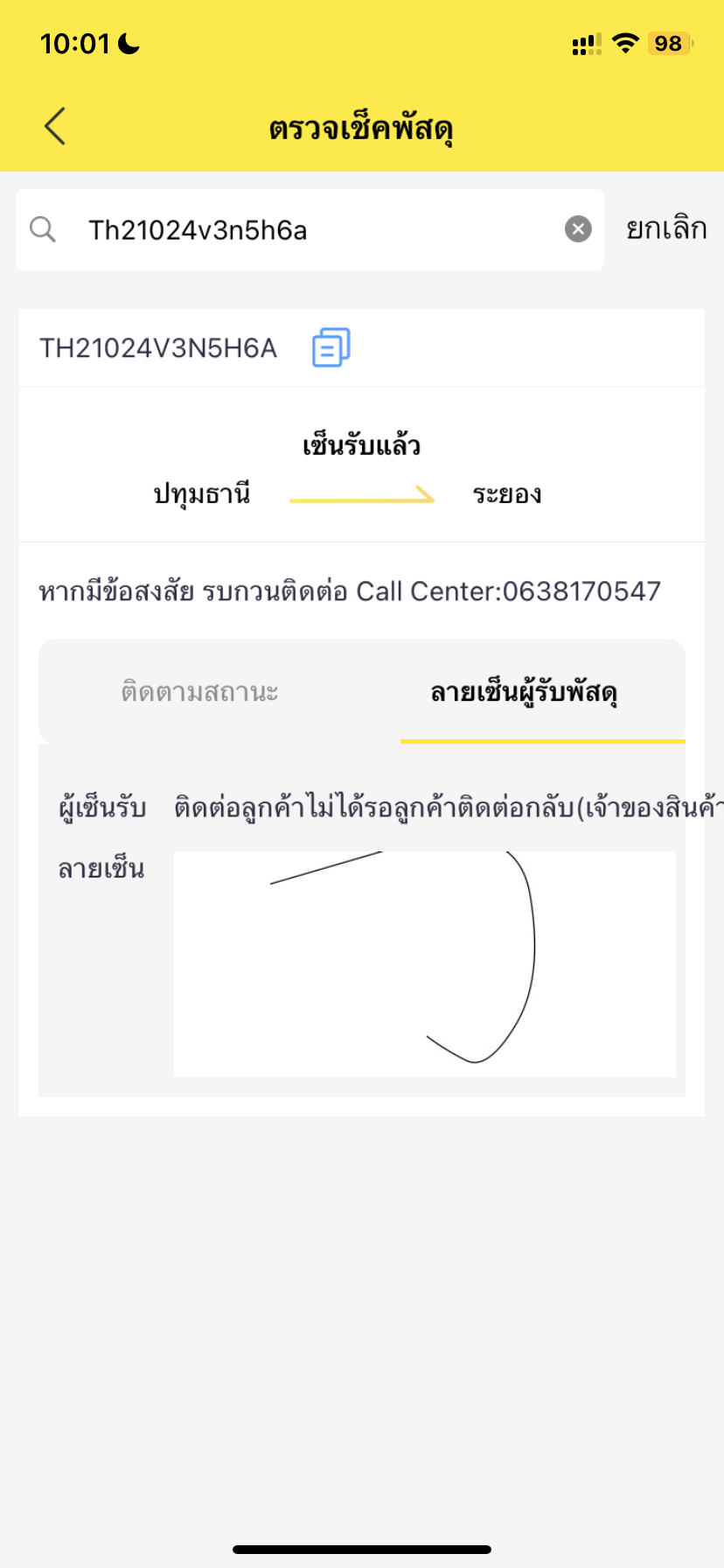 2 วันก่อนมีการรับสายบอกจะติดตามให้ จนวันนี้ยังไม่ได้รับของเลยค่ะ ติดต่อช่อบทางใดก็ไม่ได้