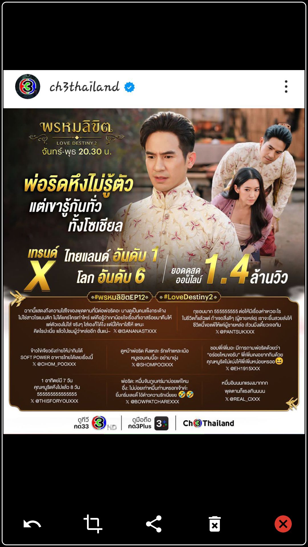 สรุปเรตติ้งละครหลังข่าวและซีรีส์(ช่วง 20:30 น.) ช่อง 3 ประจำปี 2568 🏆อันดับ 1 #คุณพี่เจ้าขาดิฉันเป็นห่านมิใช่หงส์ 🥈อันดับ 2 #เจ้าคุณพี่กับอีนางคำดวง 🥉อันดับ 3 #น้ำผึ้งขม อันดับ 4 #สายรักสายเลือด อั