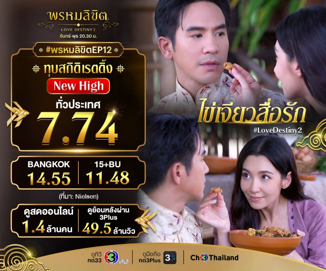 เรตติ้งละคร 13/12/66 พรหมลิขิตฝ่ากระแสแรงขึ้น 8 อีกครั้ง แม่โขงเท่าเดิมอีกแล้ว