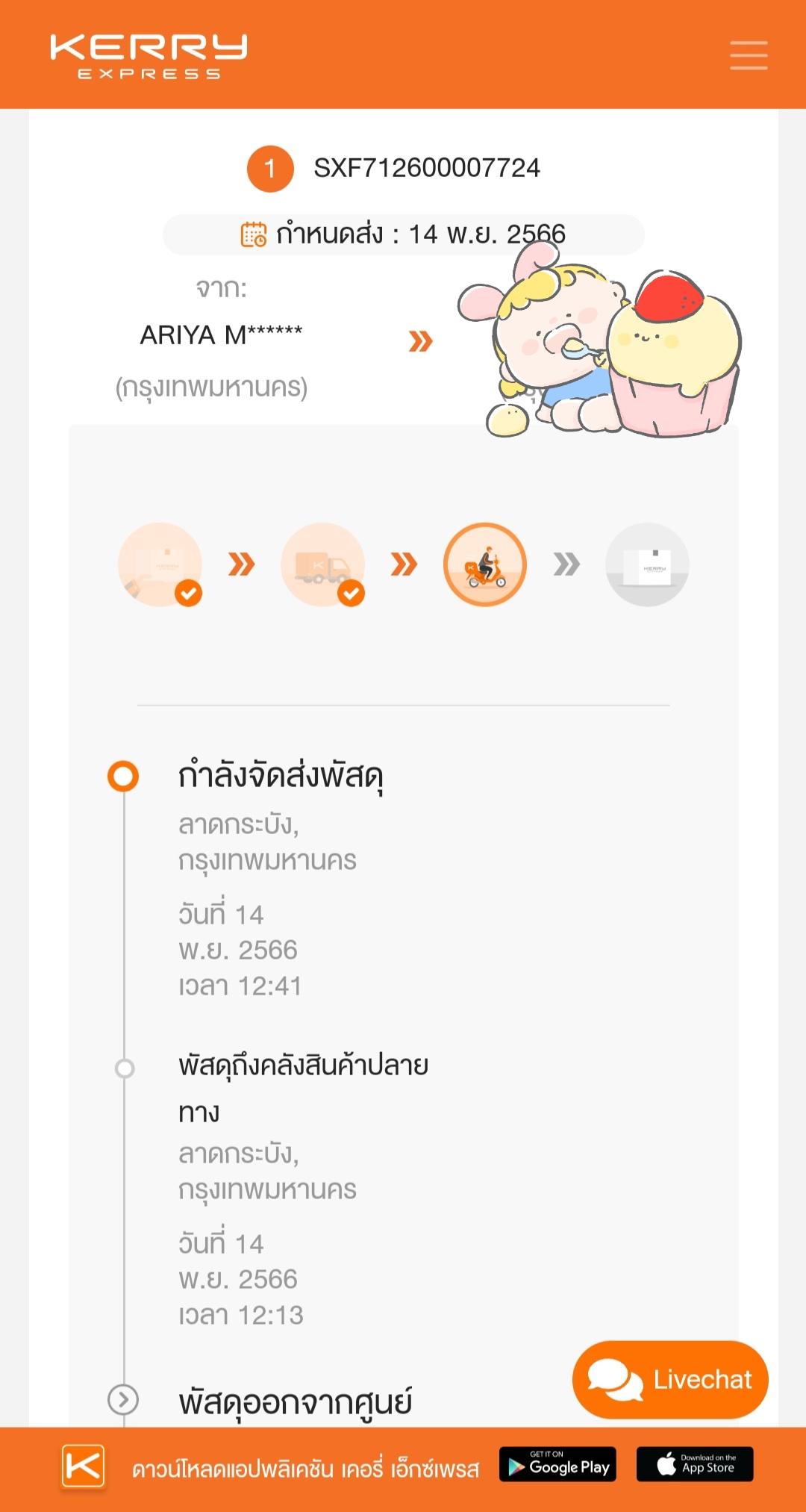 เคอรี่ ไม่มาส่งของ สถานะนิ่ง 2567