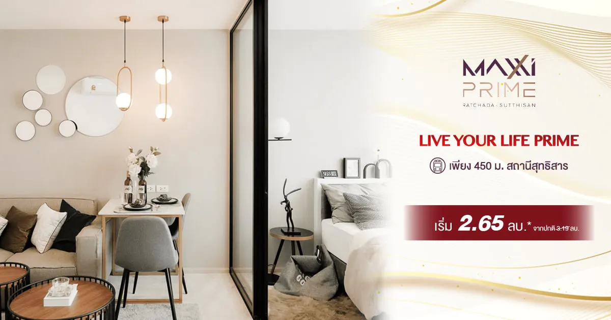 คอนโด แม็กซี่ ไพร์ม รัชดา–สุทธิสาร คอนโดสุดไพรม์ ต้นซอยสุทธิสาร ใกล้ MRT สุทธิสาร 350 ม. เริ่มต้น 2.65 ล้านบาท