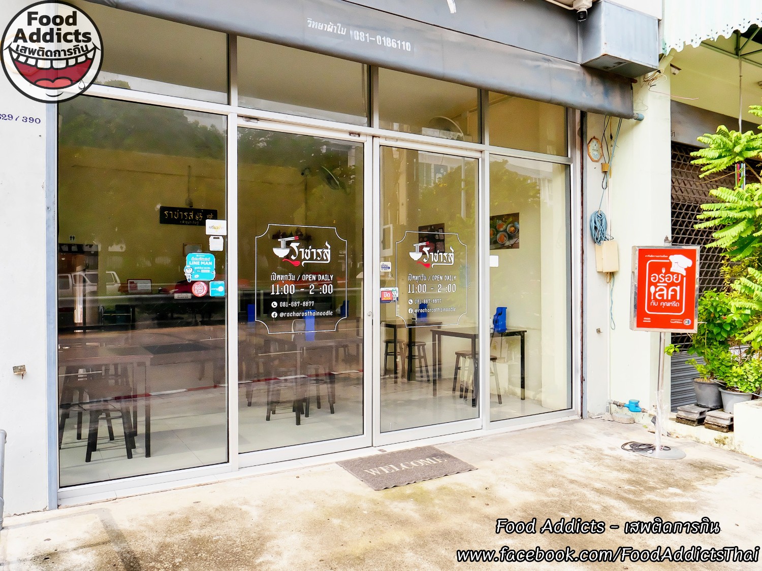 อีกหนึ่งแบรนด์ซึ่งเราได้ยินชื่อเสียงมานานเพราะเคยได้รับรางวัลการันตีด้านความอร่อยเด็ดจนต้องถูกบันทึกลงมิชลินไกด์ระดับบิบกูร์มองด์เมื่อปี 2020 แห่งจังหวัดเชียงใหม่นั่นก็คือ "ราชารส" มีจุดเด่นเรื่องก๋วยเตี๋ยวเรือเนื้อวัววากิว,หมูสายพันธุ์คุโรบูตะหม้อไฟคุณภาพระดับพรีเมียมปรุงน้ำซุปรสชาติเข้มข้นถึงใจปัจจุบันเคลื่อนย้ายถิ่นฐานลงกรุงเทพมหานครและปริมณฑลรวมกว่า 5 แห่งพร้อมจับมือร่วมกับแอปพลิเคชั่น "Hungry Hub" จัดโปรโมชั่น All You Can Eat สั่งได้ไม่อั้นเกือบ 40 เมนูตลอด 2 ชั่วโมงเต็มราคาเริ่มต้นเพียงคนละ 349 บาทสุทธิ เด็กเล็กตัวสูงไม่เกิน 110 ซม.กินฟรี 110-130 ซม.จ่ายแค่ 50% โดยวันนี้เราเลือกสาขาที่ใกล้บ้านสุดได้แก่ซอยสาธุประดิษฐ์ 49 วิธีการเดินทางด้วยรถยนต์ส่วนตัวเพียงค้นหาปักหมุดขับตามระบบแผนที่บนมือถือทันทีสามารถจอดบริเวณริมถนนยานนาวาตลอดแนว ถ้าเลือกใช้บริการขนส่งสาธารณะแนะนำว่านั่ง BRT สถานีวัดดอกไม้พระราม 3 ค่อยโบกเรียกแท็กซี่หรือกระโดดซ้อนท้ายมอเตอร์ไซค์รับจ้างใกล้เคียงเลี้ยวเข้าสาธุประดิษฐ์อีกประมาณ 2 กิโลเมตรจะพบอาคารพาณิชย์ขนาดหนึ่งคูหาความสูงสี่ชั้นตั้งตระหง่านอยู่ตรงหัวมุมพอดีล้อมรอบด้วยประตูและหน้าต่างกระจกบานใหญ่ล้อมเกือบรอบทุกด้านติดสติ๊กเกอร์ป้ายชื่อร้านค่อนข้างสังเกตยากสักหน่อยแบบนี้แสดงว่าถึงแล้วเรียบร้อยครับผม