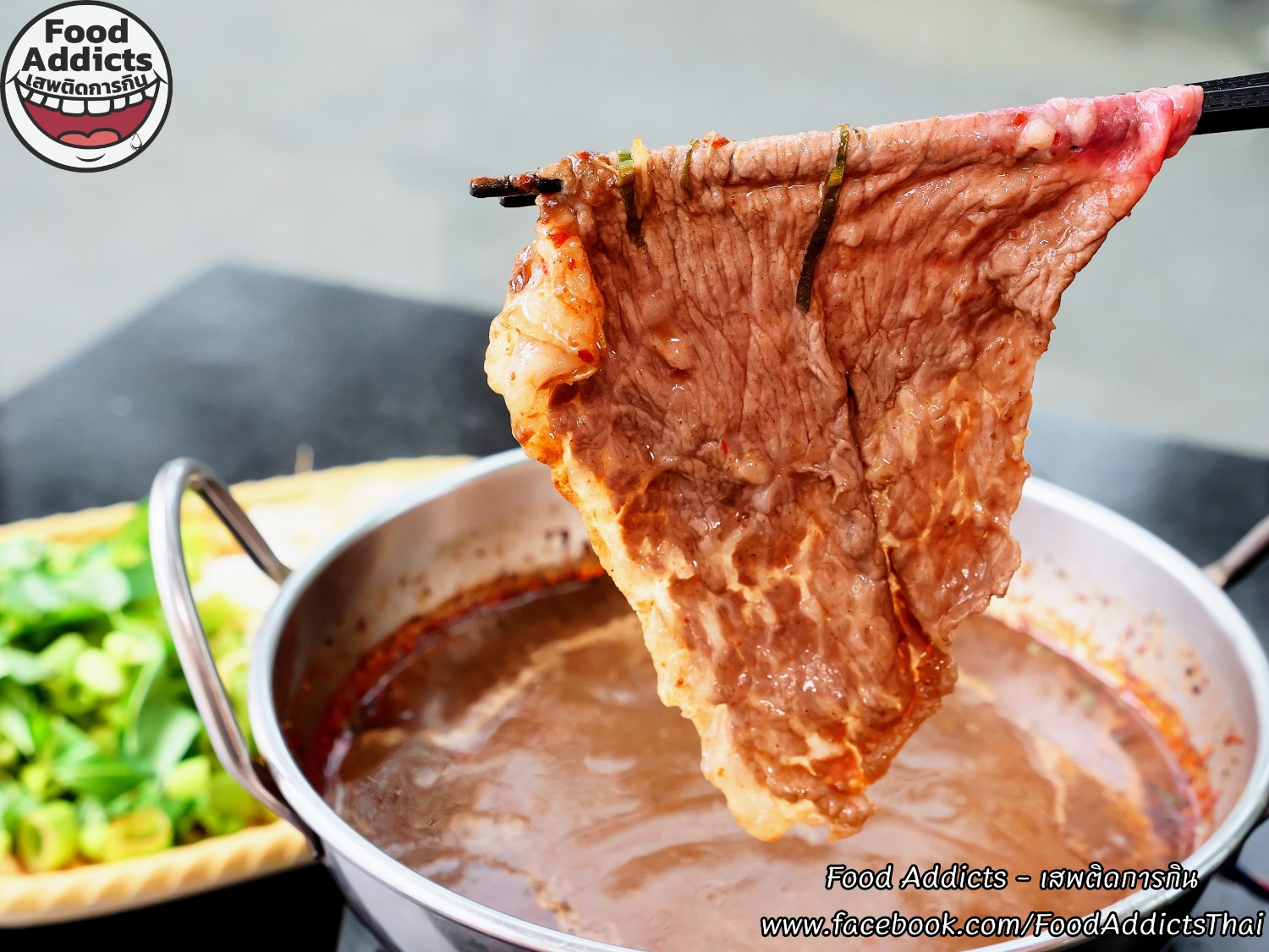 เมนูถัดมาอยู่ในหมวด Premium จำกัดออเดอร์ได้เพียงคนละ 1 จานเมื่อสำรองที่นั่งล่วงหน้าผ่านแอปพลิเคชั่น "Hungry Hub" ราคาคนละ 555 บาทเท่านั้นได้แก่ "สเต๊กเนื้อออสเตรเลีย" บริเวณสันแหลมหรือริบอายสายพันธุ์ท้องถิ่นนำเข้าจากประเทศออสเตรเลียเกรด Grain Fed แทรกชั้นไขมันสวยงามรสชาติเข้มข้นกลิ่นเด่นชัดเฉพาะตัวตัดแบ่งชิ้นขนาดค่อนข้างหนานำไปย่างบนเตาถ่านไฟรุนแรงวันนี้เราพิมพ์ข้อความลงช่องหมายเหตุตอนสั่งผ่านระบบ QR Code ว่าขอความสุกระดับ Medium Well กินคู่กับจิ้มแจ่วสไตล์อีสานหวานอมเปรี้ยวน้ำมะขามเปียกเผ็ดร้อนอร่อยแบบไทย / "ผัดกะเพราเนื้อวากิวตุ๋น" ไทยวากิวส่วนเนื้อแดงล้วนไร้ไขมันติดเส้นเอ็นหั่นชิ้นเล็กตุ๋นลงหม้อหนักเครื่องสมุนไพรใช้ยาวนานต้มกว่า 6 ชั่วโมงจนเปื่อยนุ่มคลุกเคล้าพริกขี้หนูสวน,กระเทียมสับและยอดใบกะเพราปรุงรสชาติเค็มกลมกล่อมสะบัดกระทะฉบับจีนติดกลิ่นไหม้ควันไฟฉุนขึ้นจมูกรับประทานพร้อมข้าวหอมมะลิชั้นดีหุงใหม่เรียงเมล็ดขาวเปล่งประกายแวววาวสวยงามปริมาณเทียบเท่า A La Carte / "เกาเหลาเนื้อรวม" เหมาะสำหรับคนที่อยากลองชิมหลายอย่างเพราะคิดไม่ออกว่าจะเน้นอะไรพิเศษประกอบไปด้วยลูกชิ้นเอ็นวัวเด้งสู้ฟัน,เนื้อตุ๋นเหมือนกะเพรารายการแรก,บริสเกตพื้นท้องสไลซ์บางราดน้ำซุปเข้มข้นน้อยกว่าหม้อไฟซดง่ายใส่ถั่วงอก,ผักบุ้งไทยครับผม
