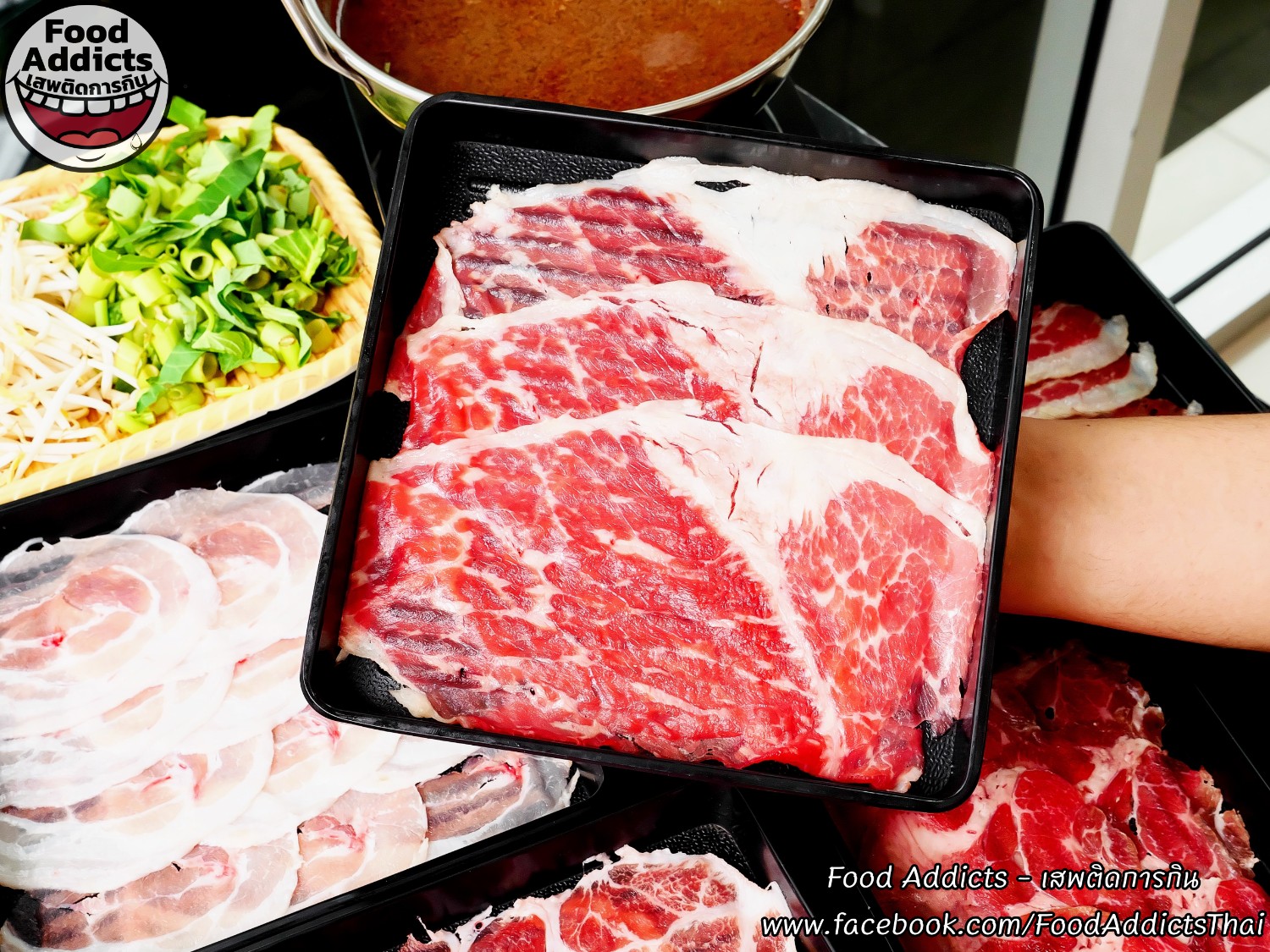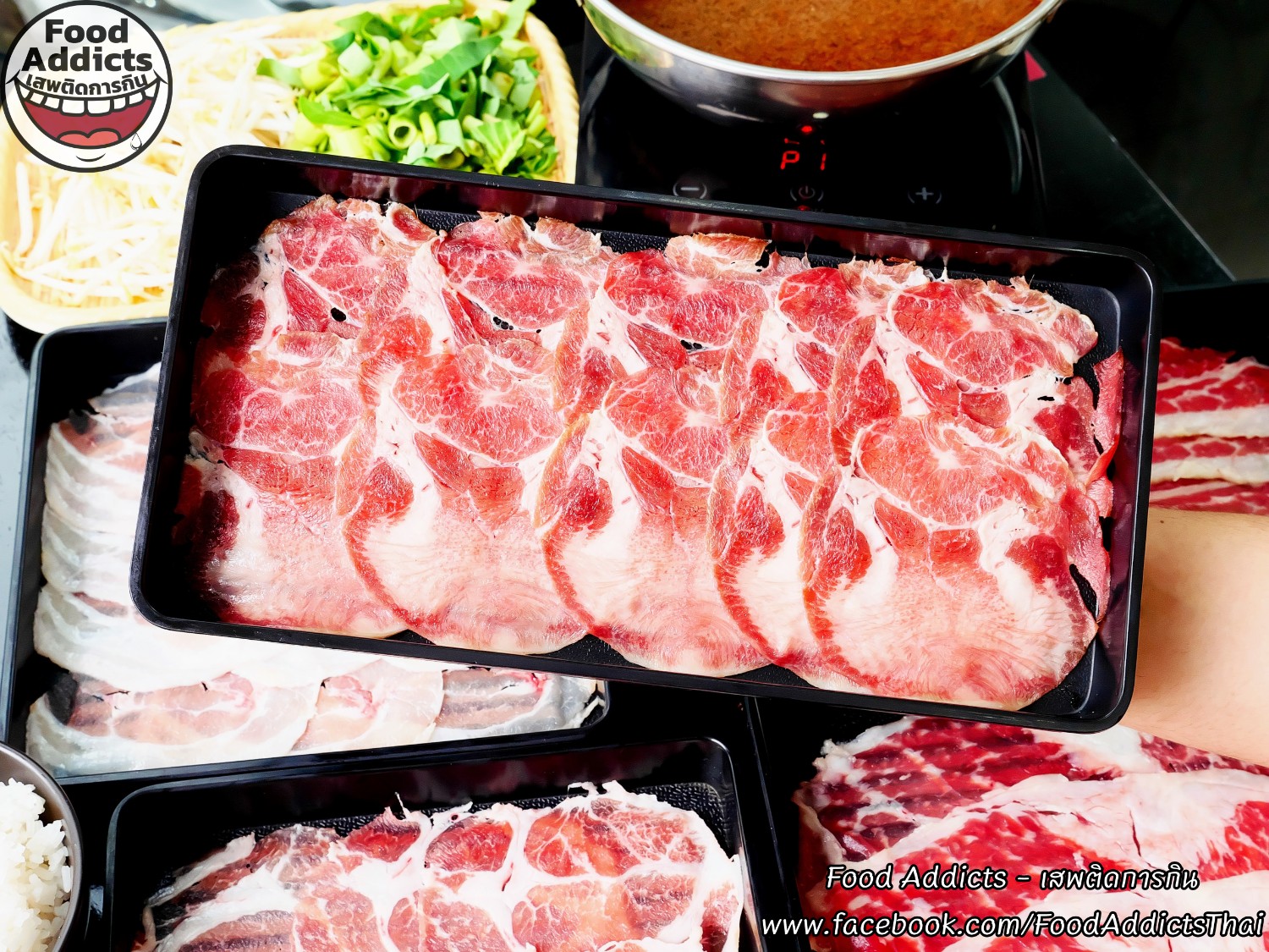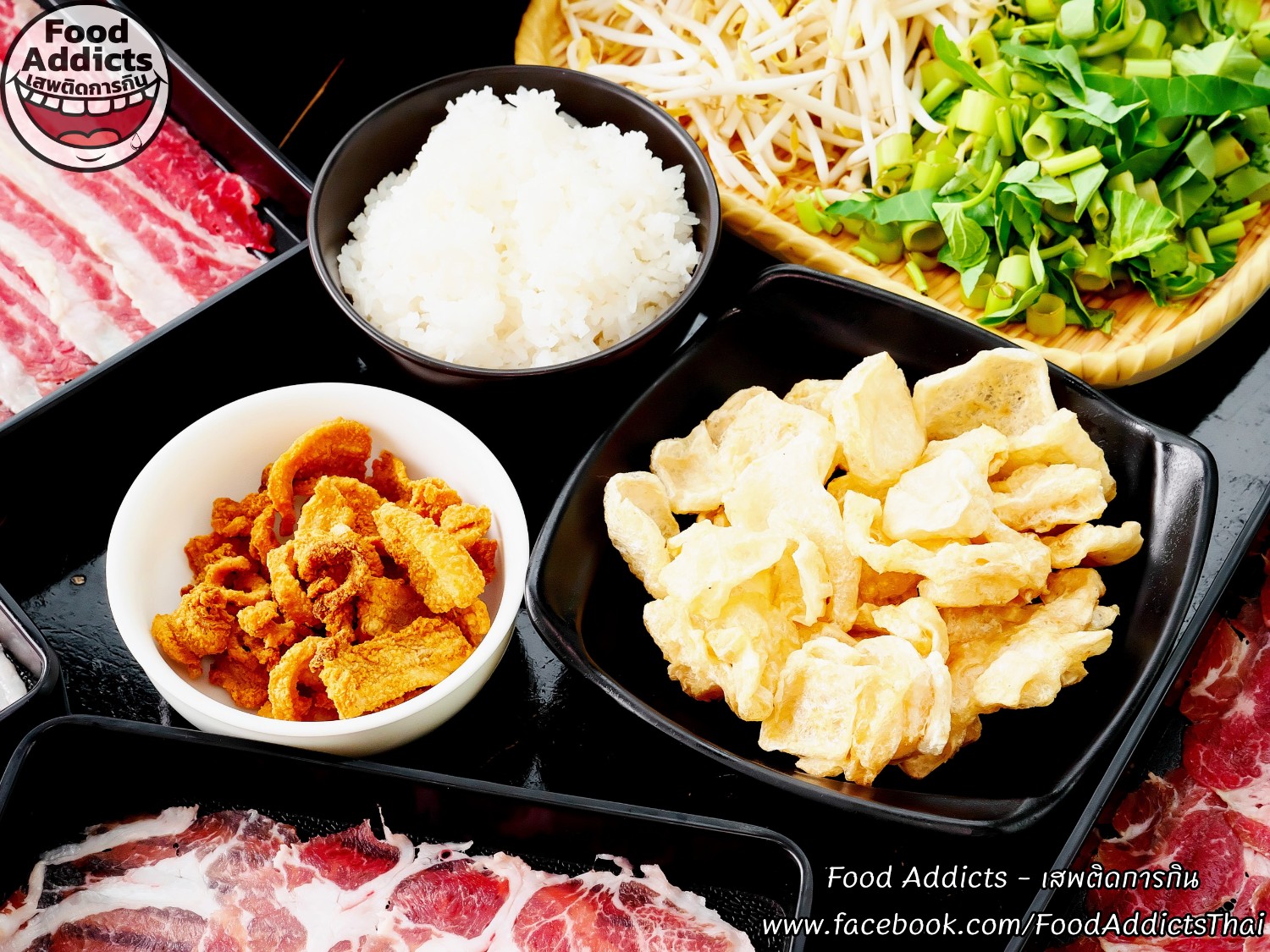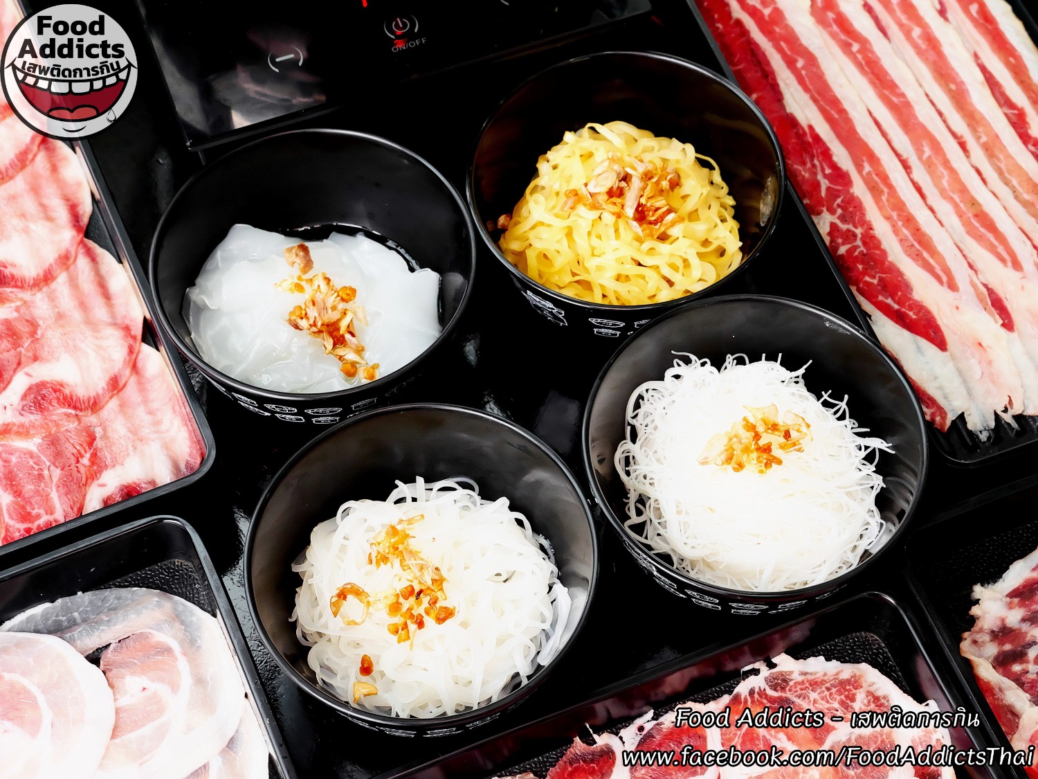 สำหรับใครที่ไม่กินเนื้อวัวแนะนำว่าตอนจองผ่านแอปพลิเคชั่น "Hungry Hub" เลือกแค่ระดับ Standard รับสิทธิ์ออเดอร์ "หมูคุโรบูตะ" ส่วนสันคอของสายพันธุ์เบอร์กเชียร์ต้นกำเนิดจากอังกฤษโดยคนญี่ปุ่นนำเข้ามาเลี้ยงรูปแบบใหม่ปรับเปลี่ยนให้อาหารคุณภาพดี,พักผ่อนเต็มที่อยู่อย่างสบายช่วยเพิ่มปริมาณไขมันแทรกละเอียดราวกับหินอ่อนตามกล้ามเนื้ออย่างยาวนานตั้งแต่ยุคเมจิจนปัจจุบันแพร่หลายจำหน่ายตามภัตตาคารชาบูปิ้งย่างระดับพรีเมียมเกือบทุกร้านในประเทศไทย / "เบคอนหมูดำ" ถึงแม้ทางแบรนด์ "ราชารส" จะตั้งชื่อตามนั้นมันก็คือสามชั้นคุโรบูตะขนสีดำสนิทอันโด่งดังแห่งจังหวัดคะโกชิมะไม่ผ่านกระบวนการรมควันเนื้อชมพูสลับไขมันม้วนแผ่นวงกลมสไลซ์บางสวยงาม ถ้าอยากได้เส้นก๋วยเตี๋ยวเปล่าๆประสานร่างหม้อไฟสามารถสั่งลวกสุกบรรจุลงถ้วยขนาดจิ๋วเคล้าน้ำมันโรยกระเทียมเจียวพร้อมทานรวม 5 ชนิดทั้งเล็ก,ใหญ่,หมี่ขาว,บะหมี่ไข่,มาม่า นอกนั้นก็เป็นเครื่องเคียงพื้นฐานซึ่งขาดไม่ได้เมื่อนึกถึงเมนูก๋วยเตี๋ยวเรือได้แก่ "กากหมูทอดเกลือ" หนังติดไขมันคลุกเกลือสมุทรและแป้งสาลีเบาบางสีเหลืองกรุบกรอบสไตล์เจียงฮาย / "แคบวัว" หนังวัวตากแห้งทอดฟูมีกลิ่นหอมแตกต่างจากแคบหมูธรรมดาอย่างสิ้นเชิง / "ข้าวเปล่า" วางเนื้อสัตว์ราดน้ำซุปตักน้ำตาลทราย,พริกขี้หนูป่น,น้ำส้มสายชู,น้ำปลาปรุงน้ำจิ้มได้เองตามใจครับผม