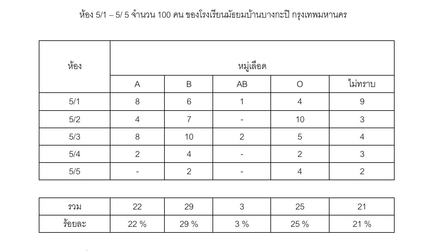 หมู่เลือดนักเรียนชั้นมัธยมศึกษาปีที่5