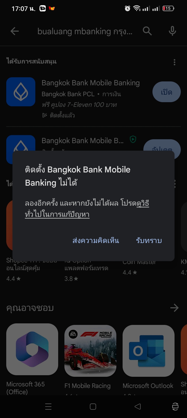 เหมือนมันไม่รองรับ ผมใช้Android13 มันขึ้นแบบนี้ อัพเดทไม่ได้ เข้าธนาคารด้วยสมุดบัญชีก็เด้งออก