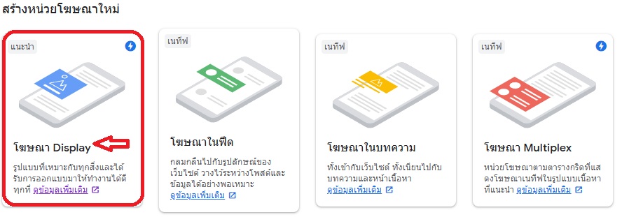 สอบถามเพื่อนสมาชิกในหัวข้อ "สร้างหน่วยโฆษณาใหม่ โฆษณา Display" ทำยังไงครับ?