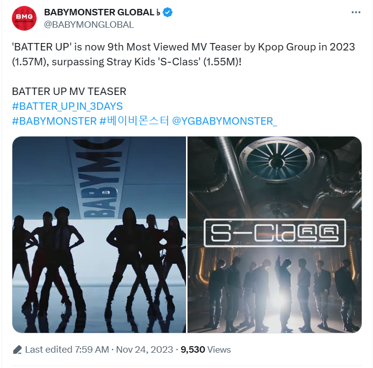 BABYMONSTER - 'BATTER UP' M/V TEASER มียอดวิวทะลุ 1 ล้าน บน YouTube แล้ว