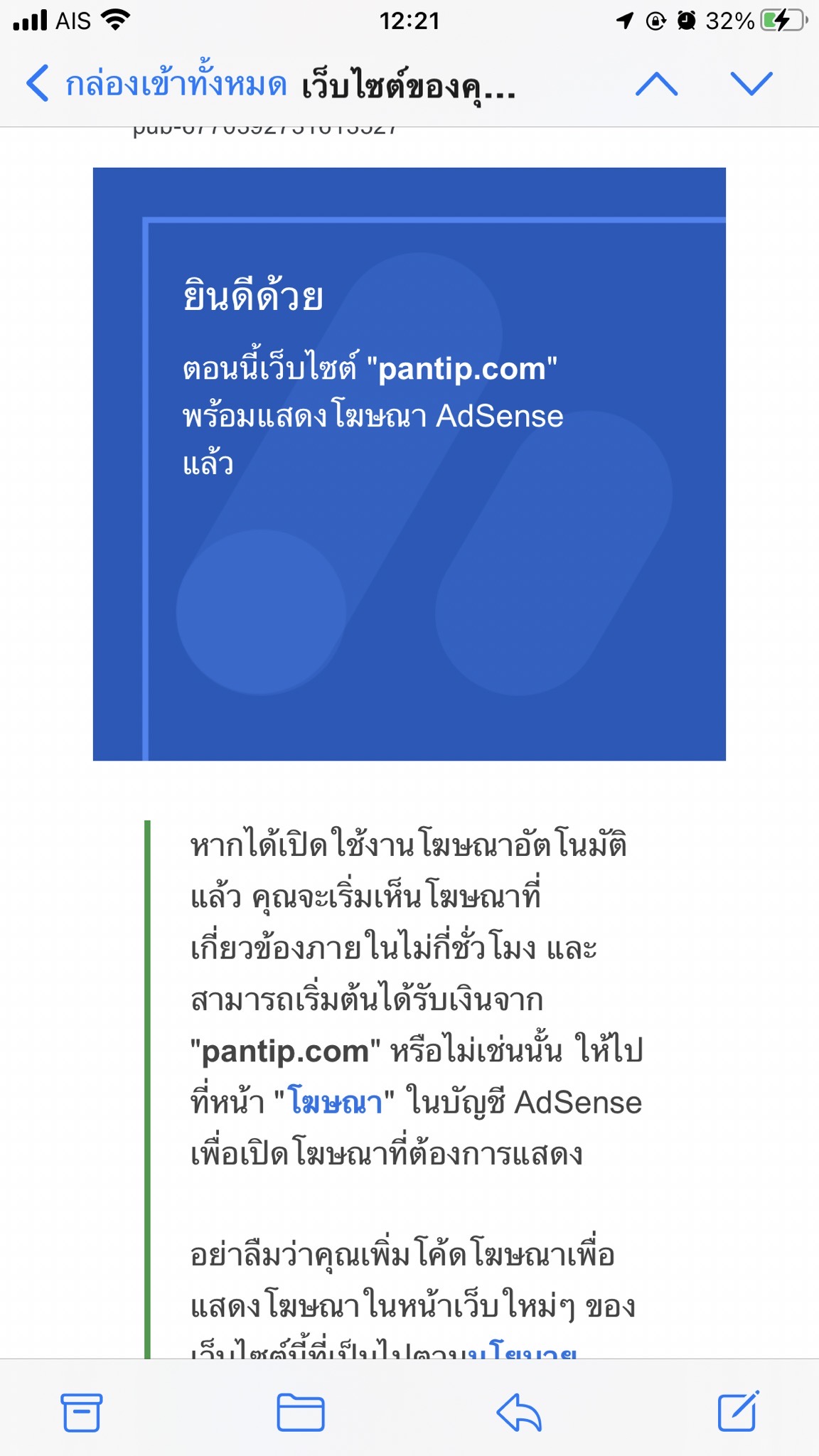 อนุมัติ ไวมาก : ยื่นผูก Adsense ผ่านกระทู้ Pantip