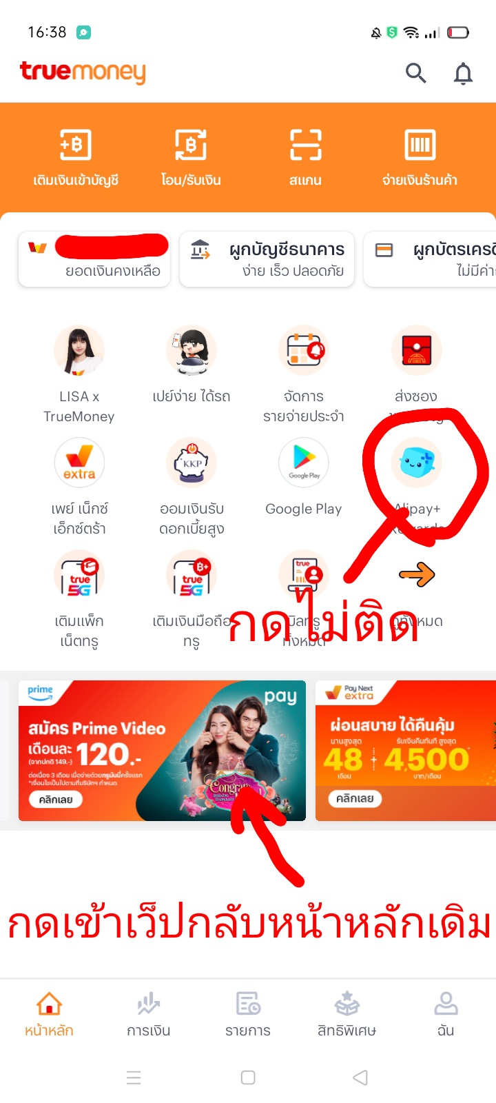 TrueMoney Wallet กดอะไรไม่ติดและเข้าไม่ได้
