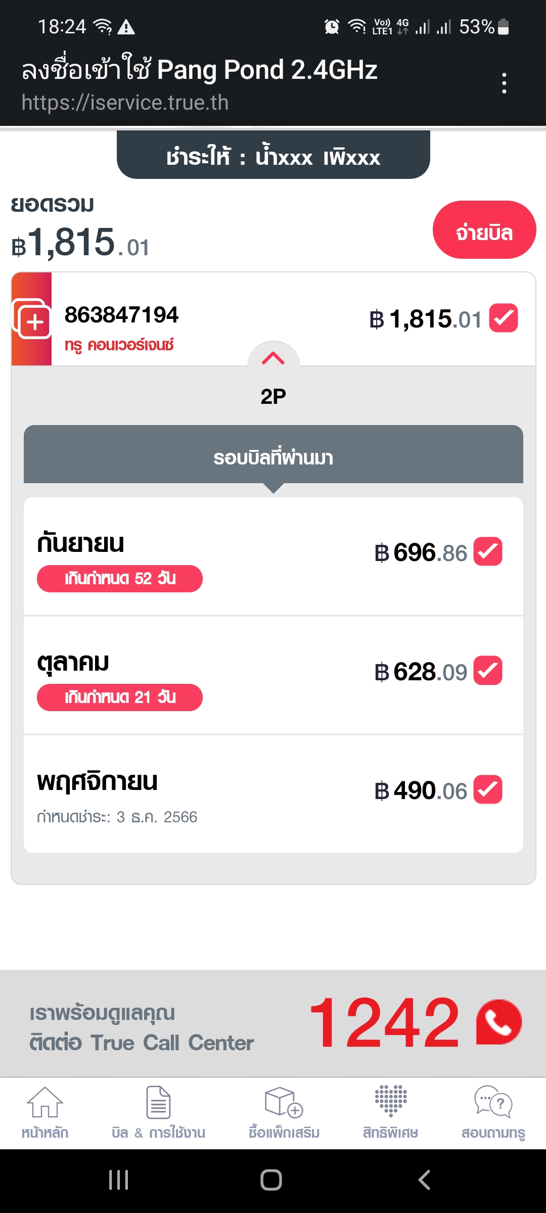 ติดต่อเน็ตบ้านของทรูค่ะ คือว่าเราเปิดใช้งานเน็ต+มีซิมทรูแถมมาด้วย แล้วในเดือน ก.ย.มียอดค่าใช้จ่ายของเบอร์มา1,81