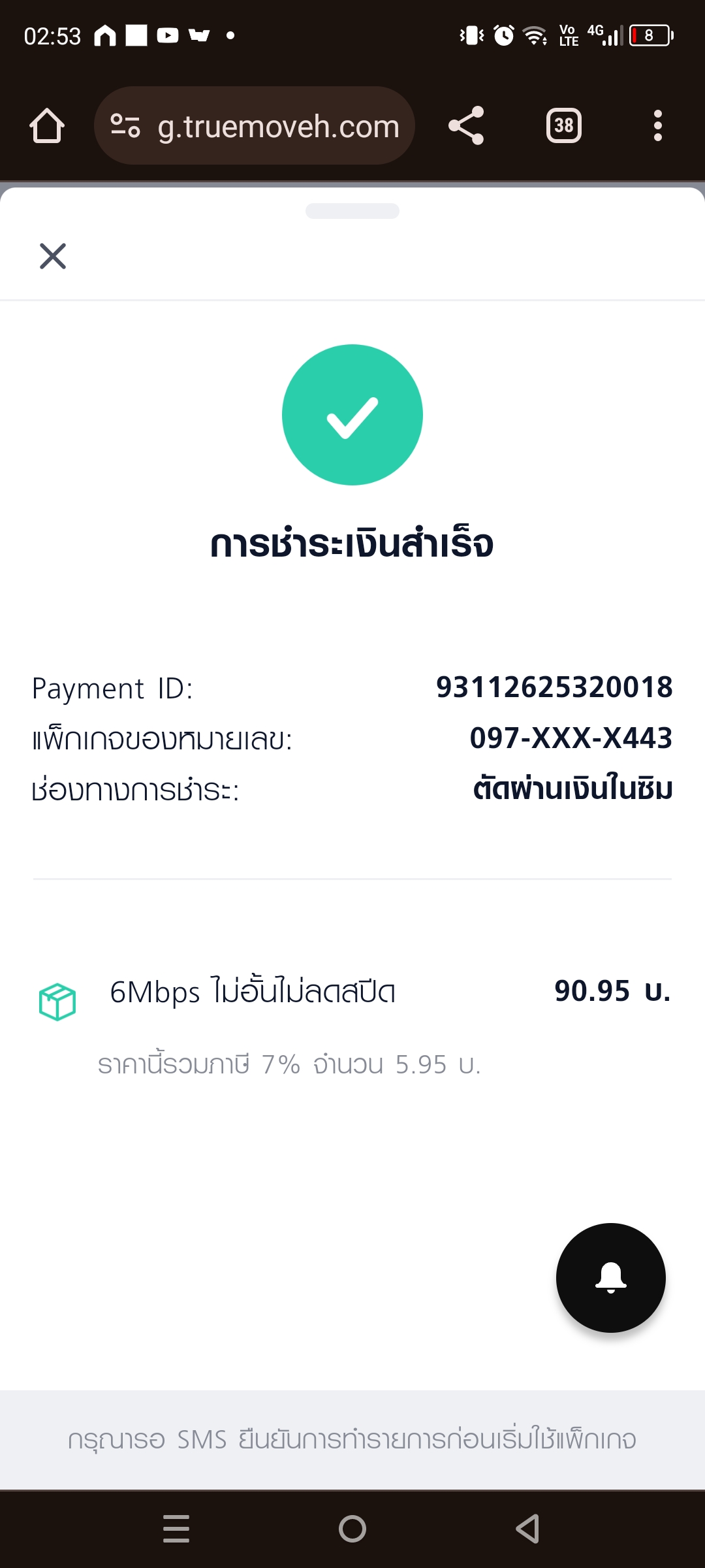 สมัคเนททรูตัดเงินจากซิม แล้วเช็คเเพ็กสรุปไม่มีแพ็กเก็จ
