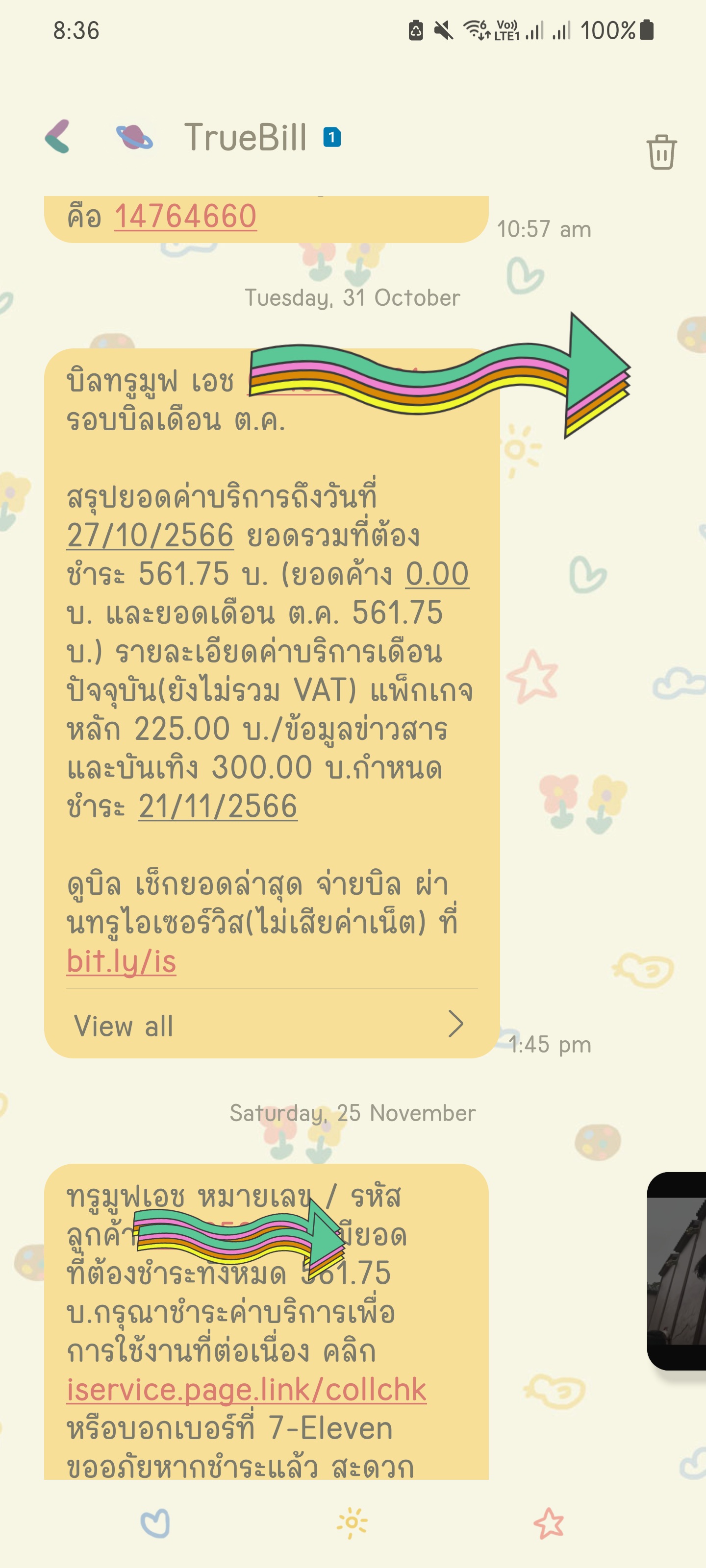 รายเดือน มันคือค่าอะไรคะ 447 ค่าสินค้าบริการอื่นๆ เดือน11 งงมาก เพราะยังไม่ได้ใช้ซื้ออะไรเลย เช็คให้หน่อย 0845813474
