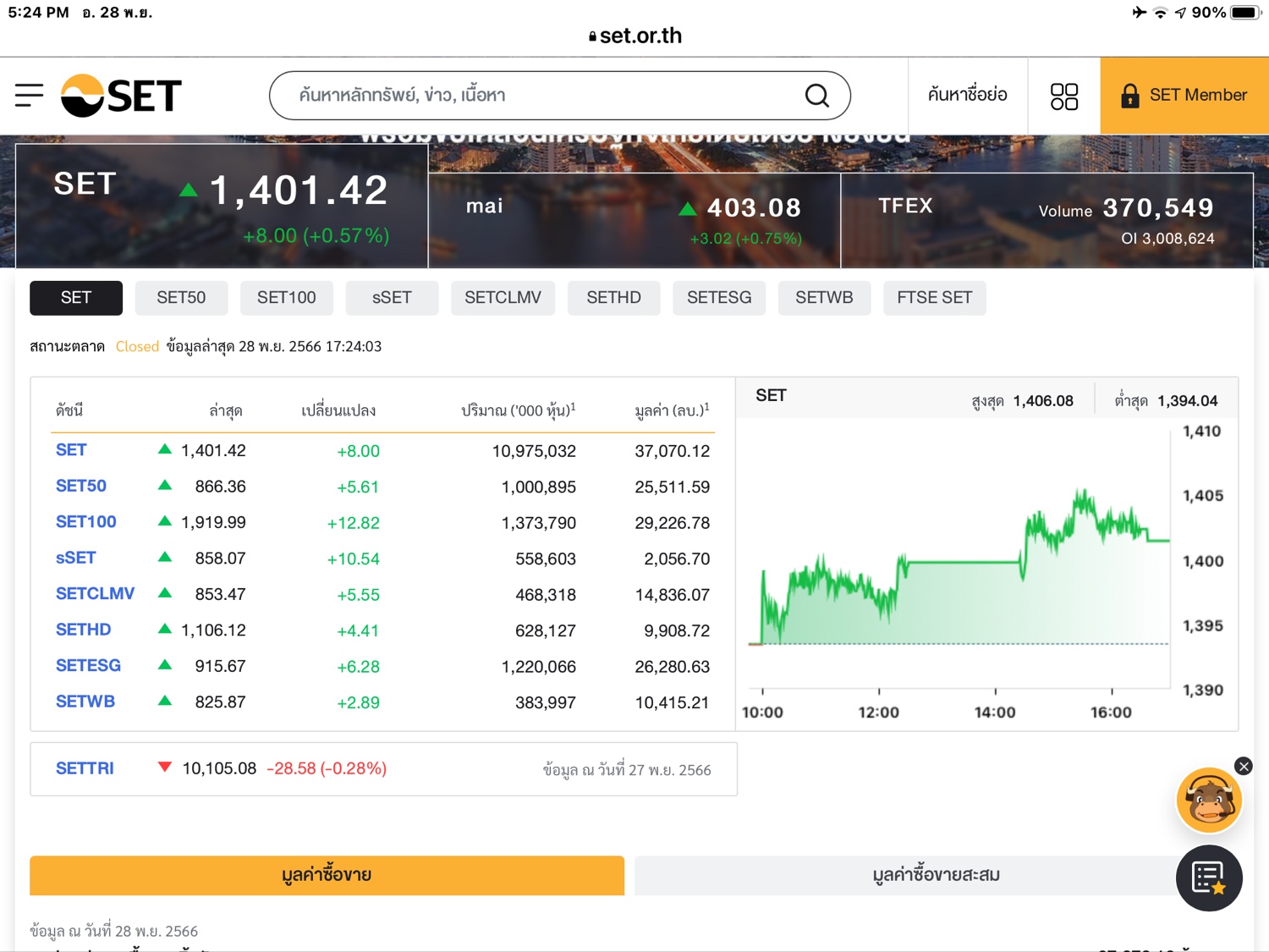 set .. 28.11.2023. Set summary. ต่างชาติ buy 773.14 ลบ