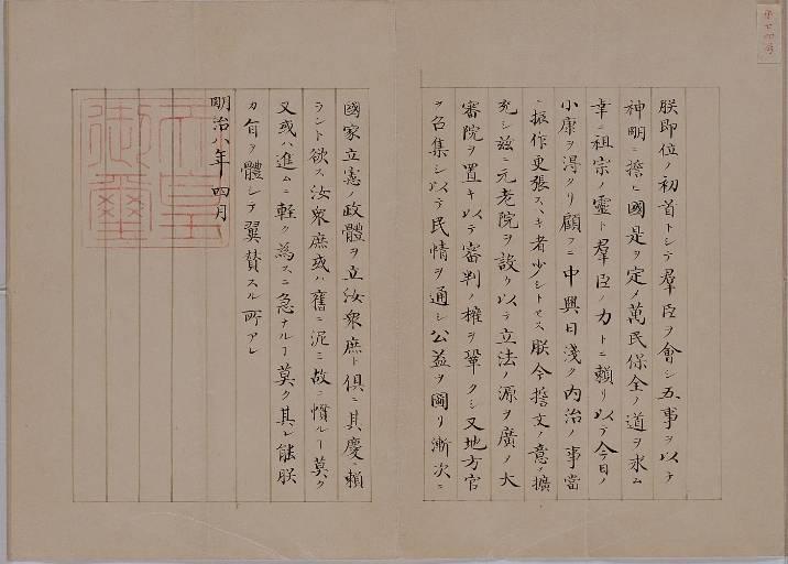 เป็นเอกสารพระราชกฤษฎีกาที่ออกในเดือนเมษายน ปีที่ 8 สมัยเมจิ (พ.ศ. 2418)