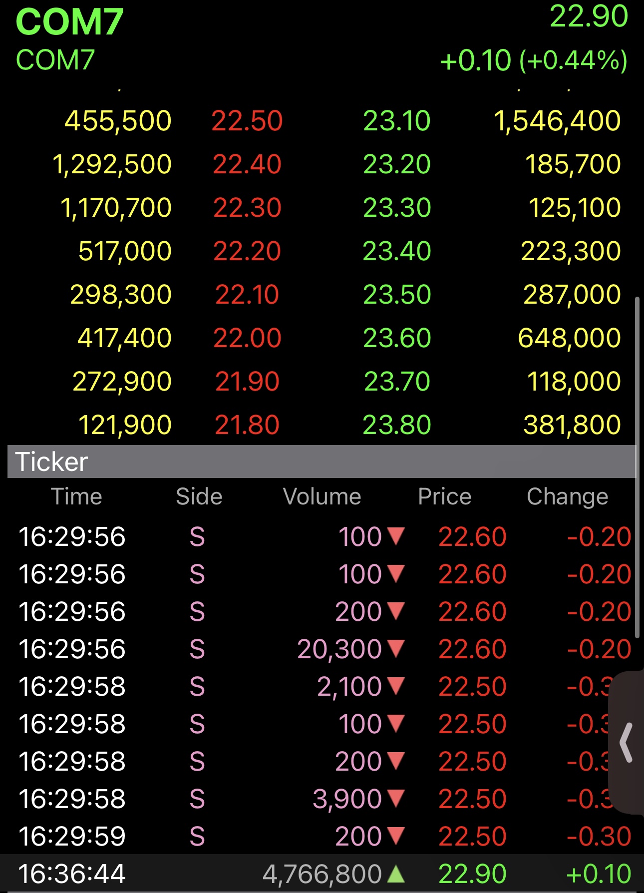 COM7 ราคาปิดทำไมกระโดดเยอะจังครับ