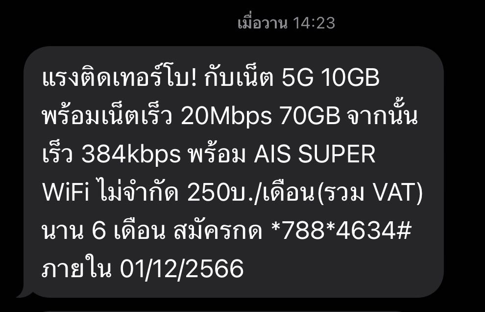 ต่ออายุ แพ็คเกจไม่ได้เอไอเอส