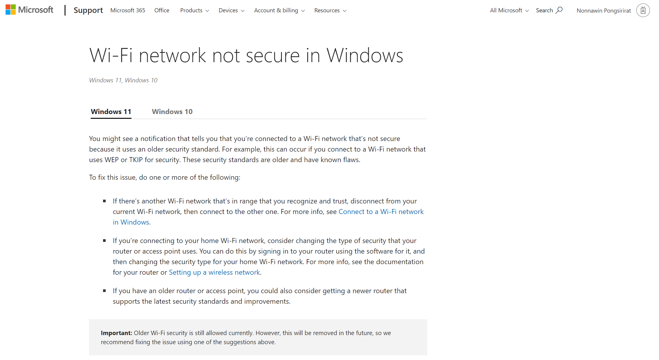 Wi-Fi network not secure in Windows ต้องทำยังไงบ้างครับ