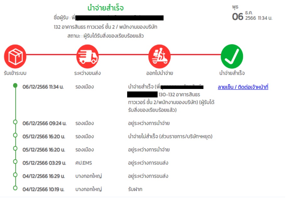 ส่ง EMS เมื่อสายวันจันทร์์ที่ 4 ธันวาคม ลืมนึกไปว่าวันรุ่งขึ้นสถาบันการเงินปิดทำการ