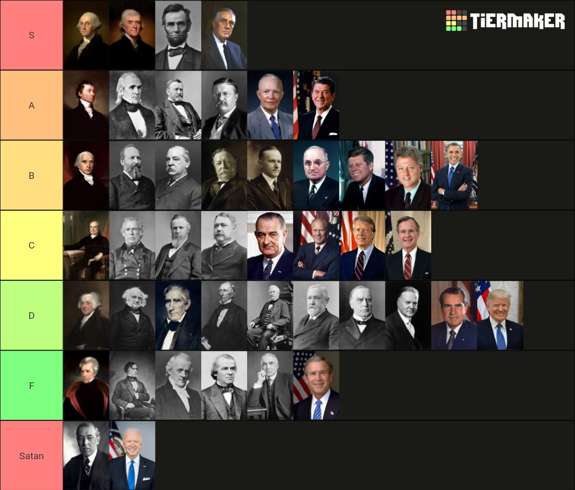 เทียร์ลิสต์ความนิยมชมชอบและผลงานของประธานาธิบดีสหรัฐทุกคนจากความคิดเห็นส่วนตัวผมที่ รู้ประวัติศาสตร์สหรัฐ